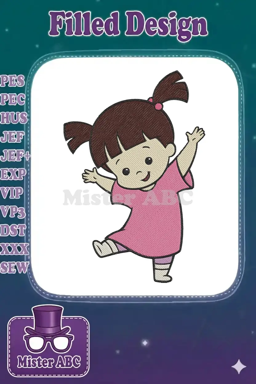 Cute Boo from Monsters Inc. joyful pose embroidery designs