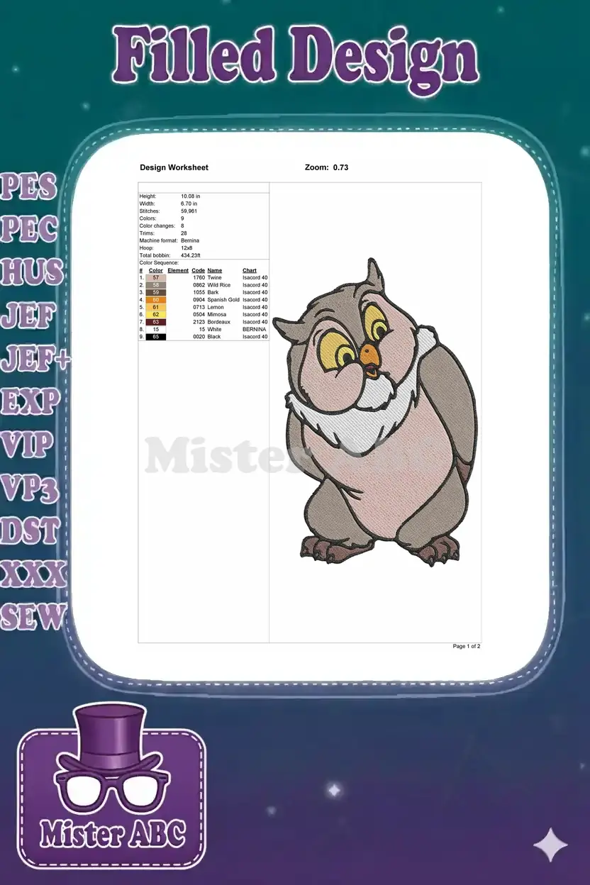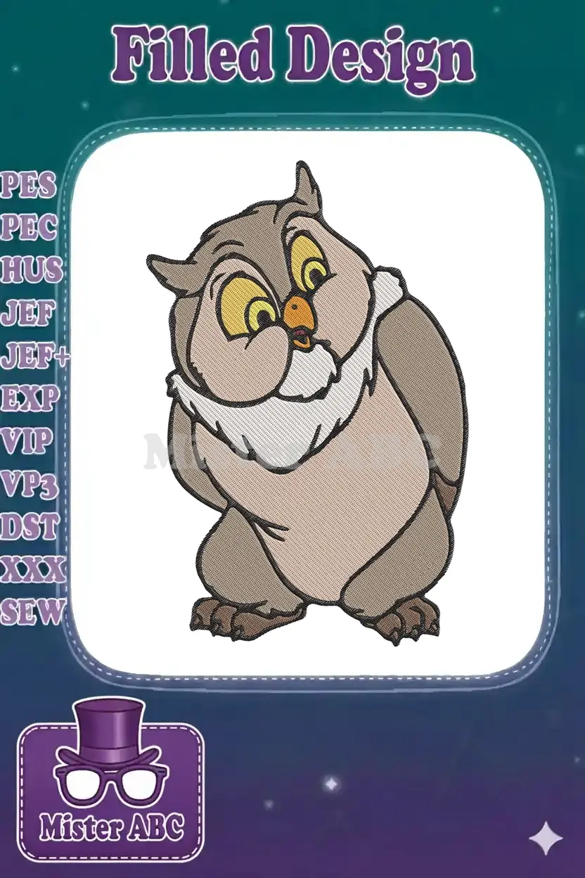 Cute brown cartoon owl character embroidery designs for children’s apparel