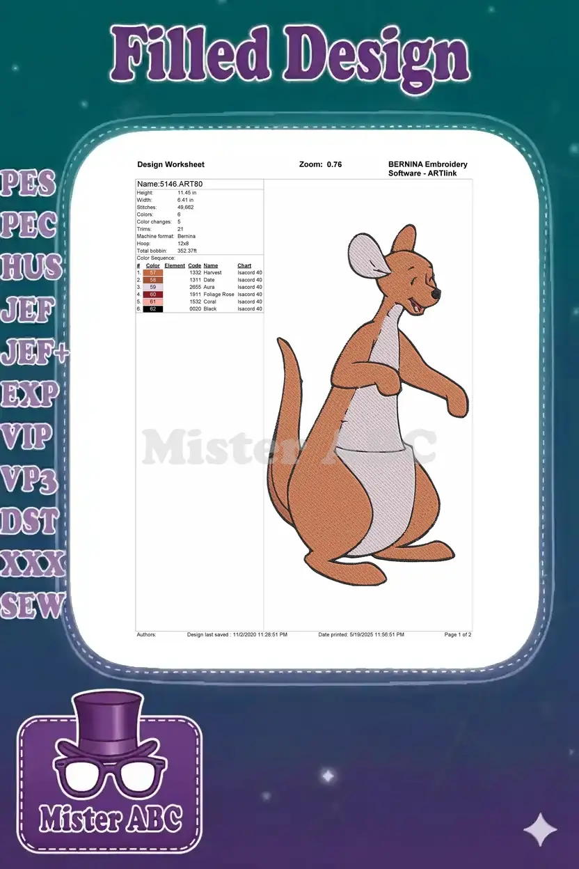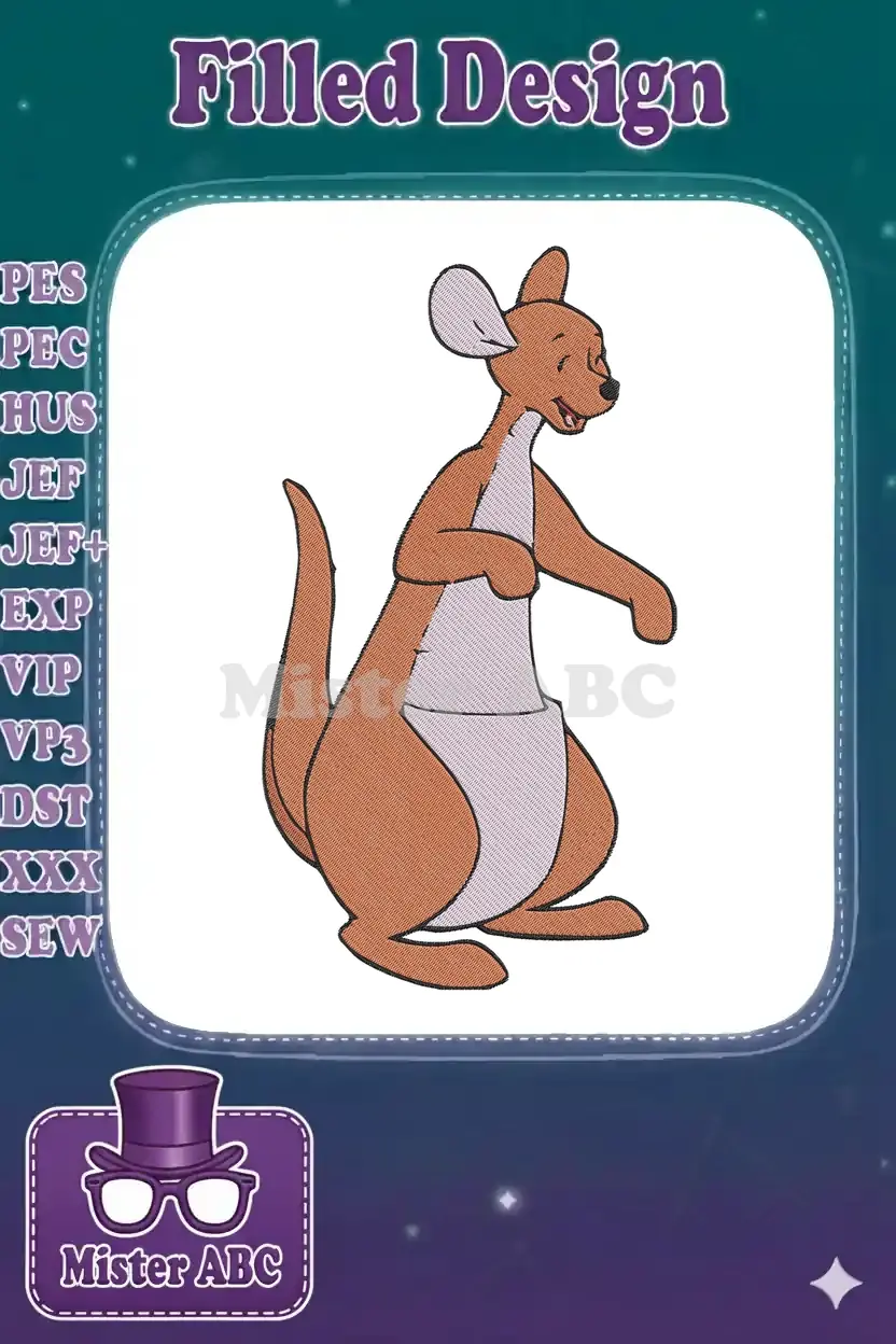 Cute brown kangaroo Kanga with pouch embroidery designs