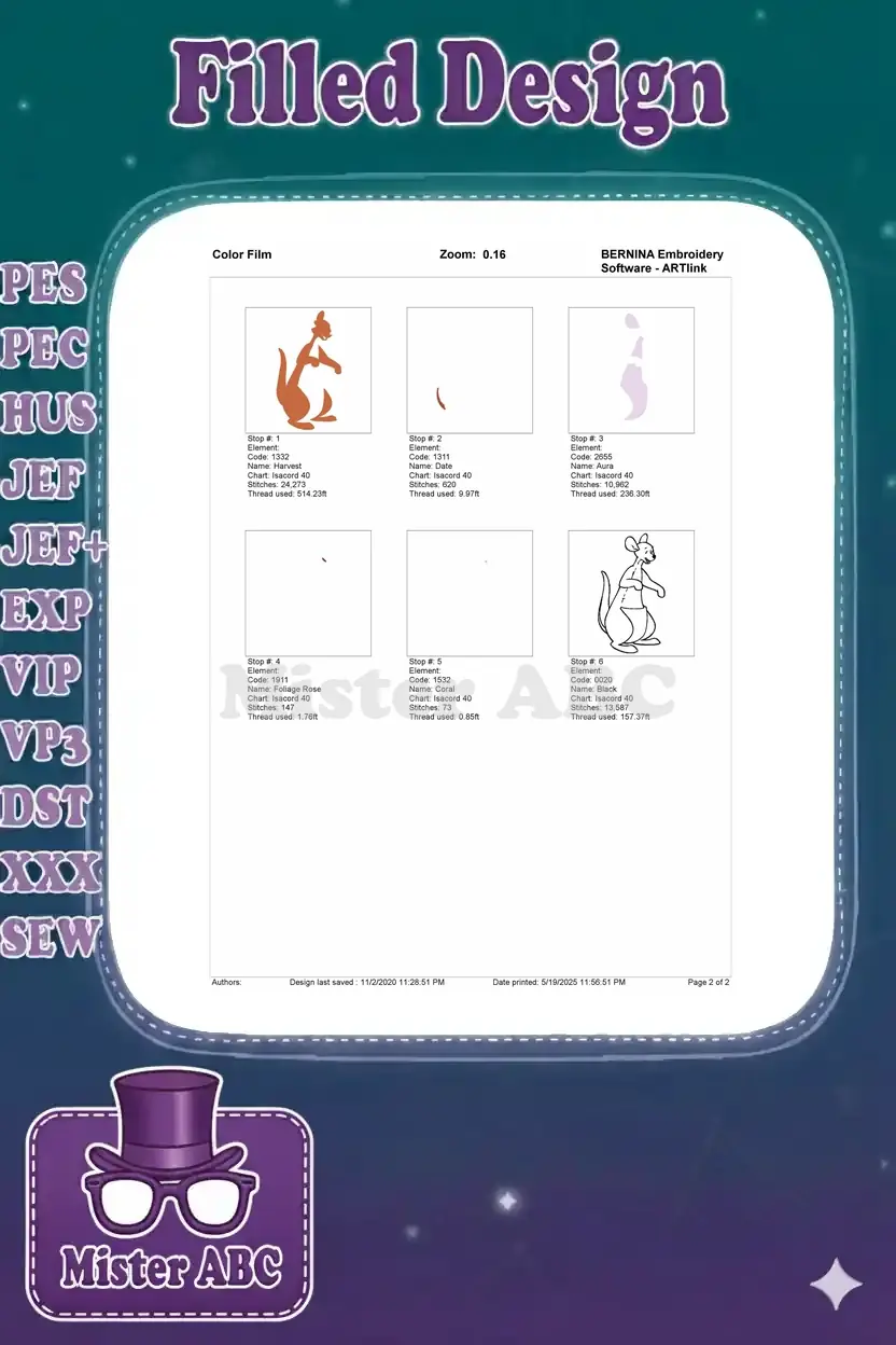 Adorable classic cartoon baby kangaroo embroidery design. Perfect for children’s projects, adding a sweet and playful touch.
