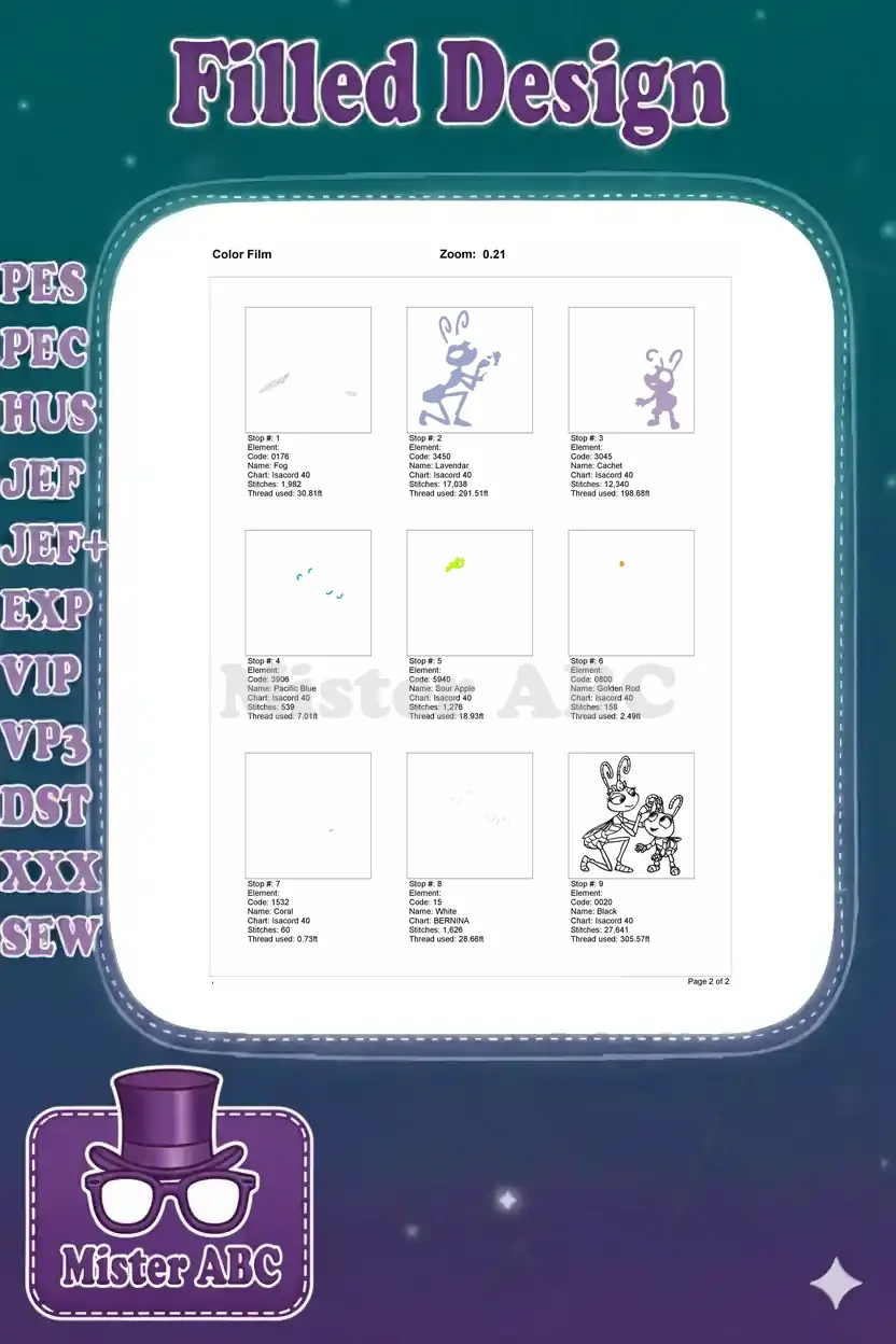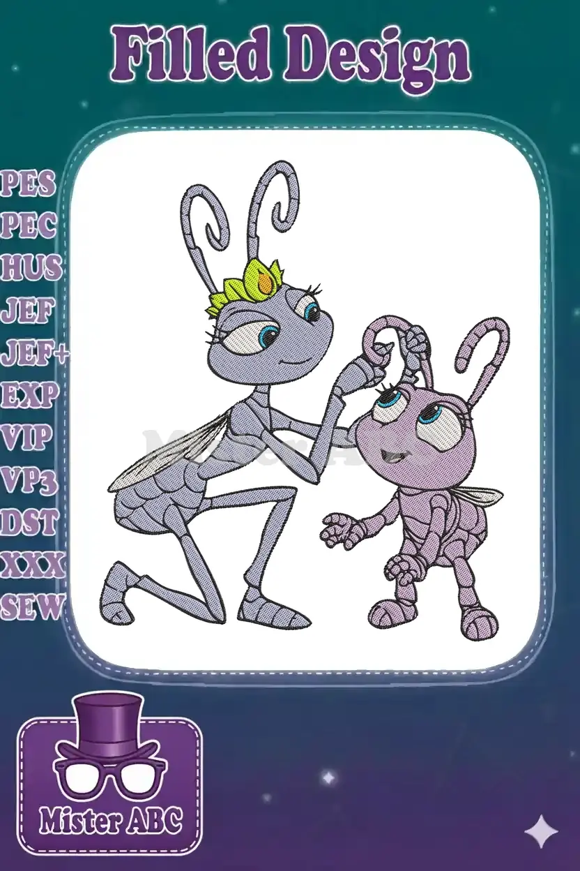 Bring the magic of A Bug’s Life to life with this charming embroidery of Princess Atta and Dot, perfect for fans!