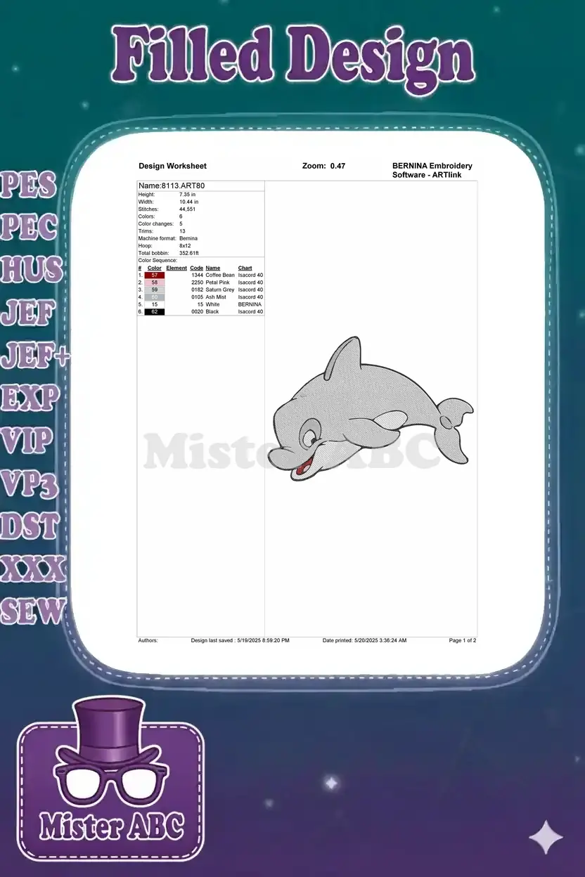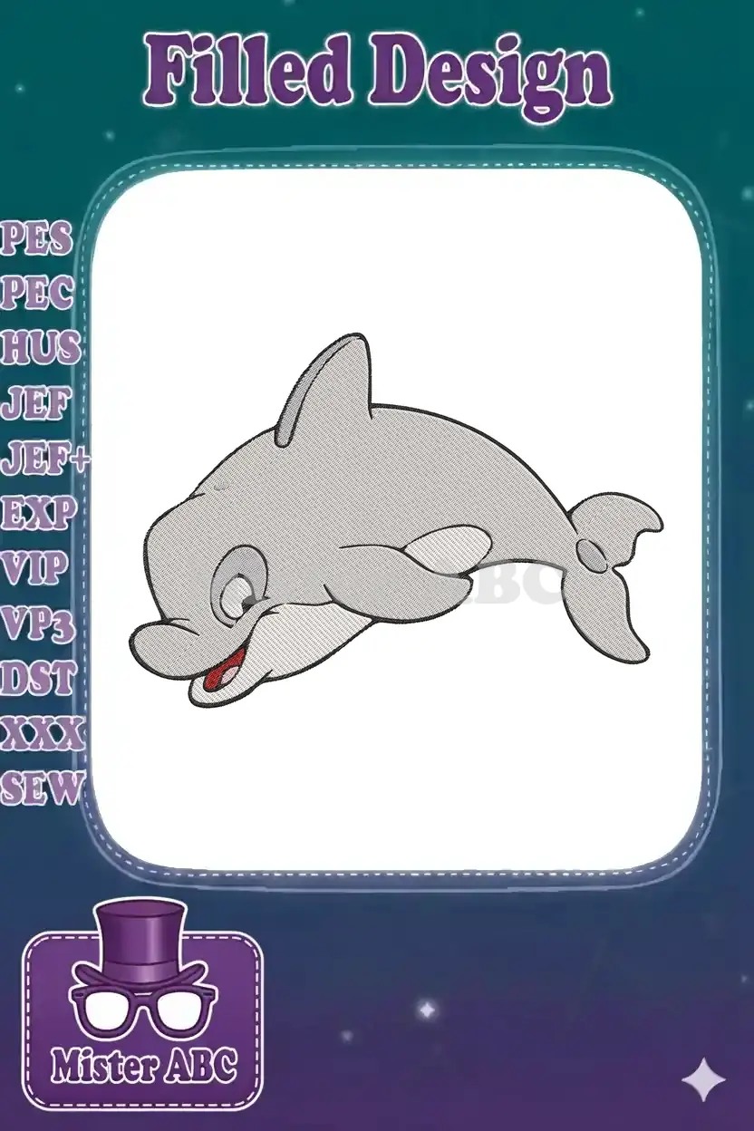 Cute cartoon grey dolphin ocean animal embroidery designs