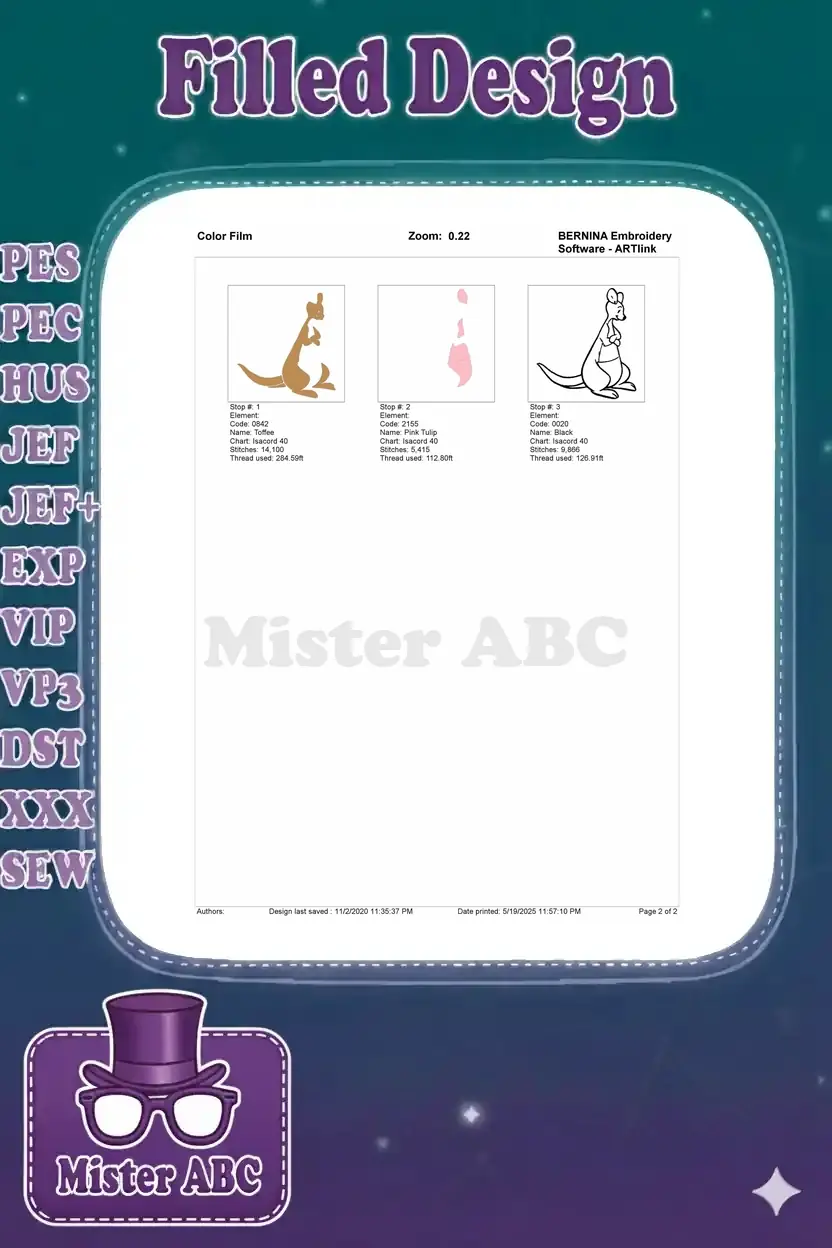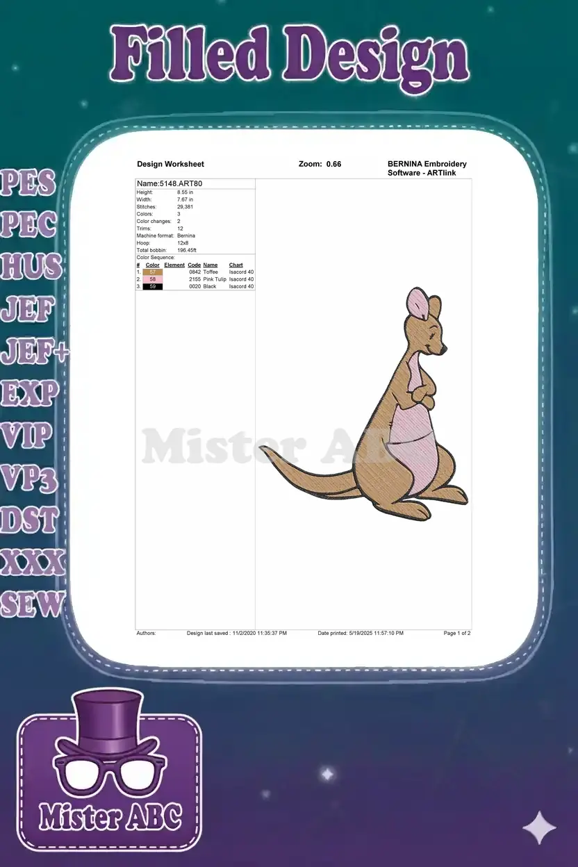 Cute cartoon kangaroo with pink pouch embroidery designs
