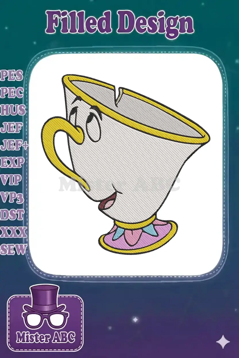 Cute Chip Teacup Disney Beauty and the Beast embroidery designs – Instant Download