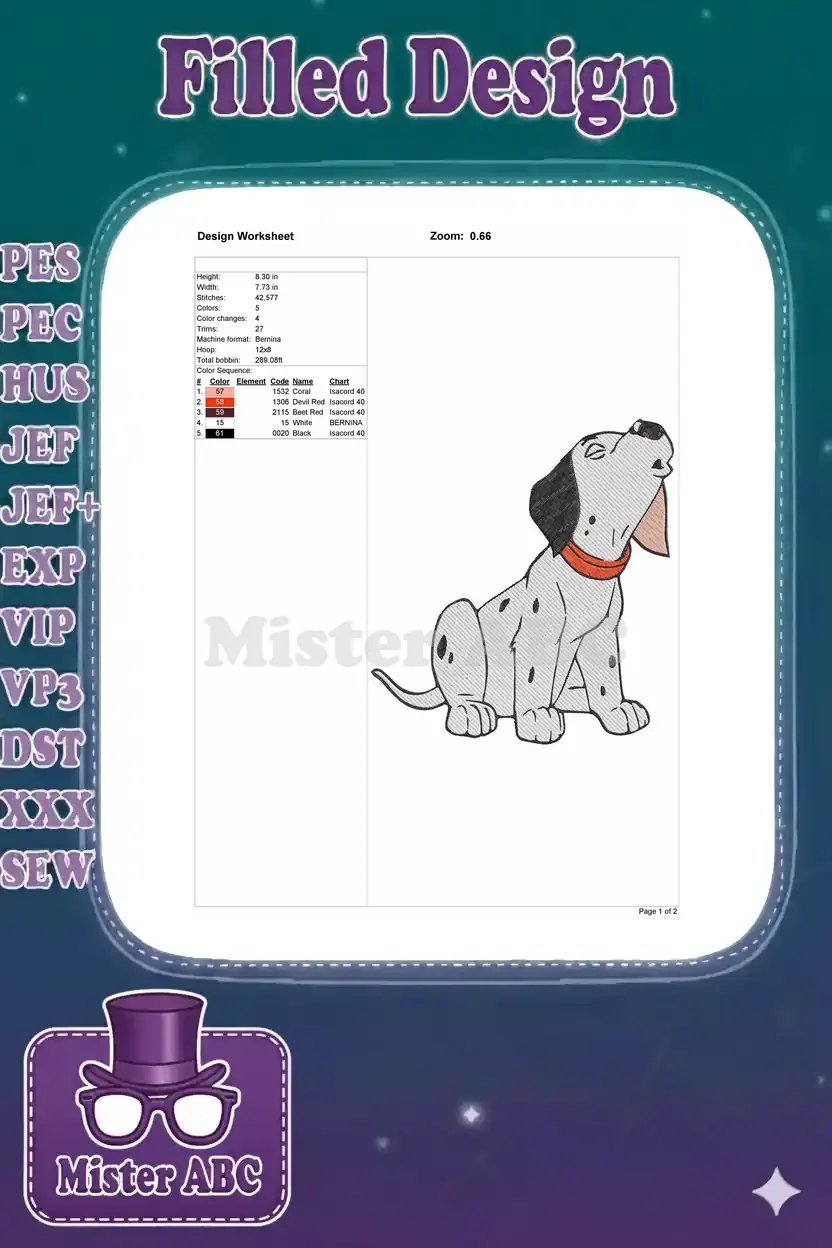 Cute Dalmatian puppy howling with red collar embroidery designs