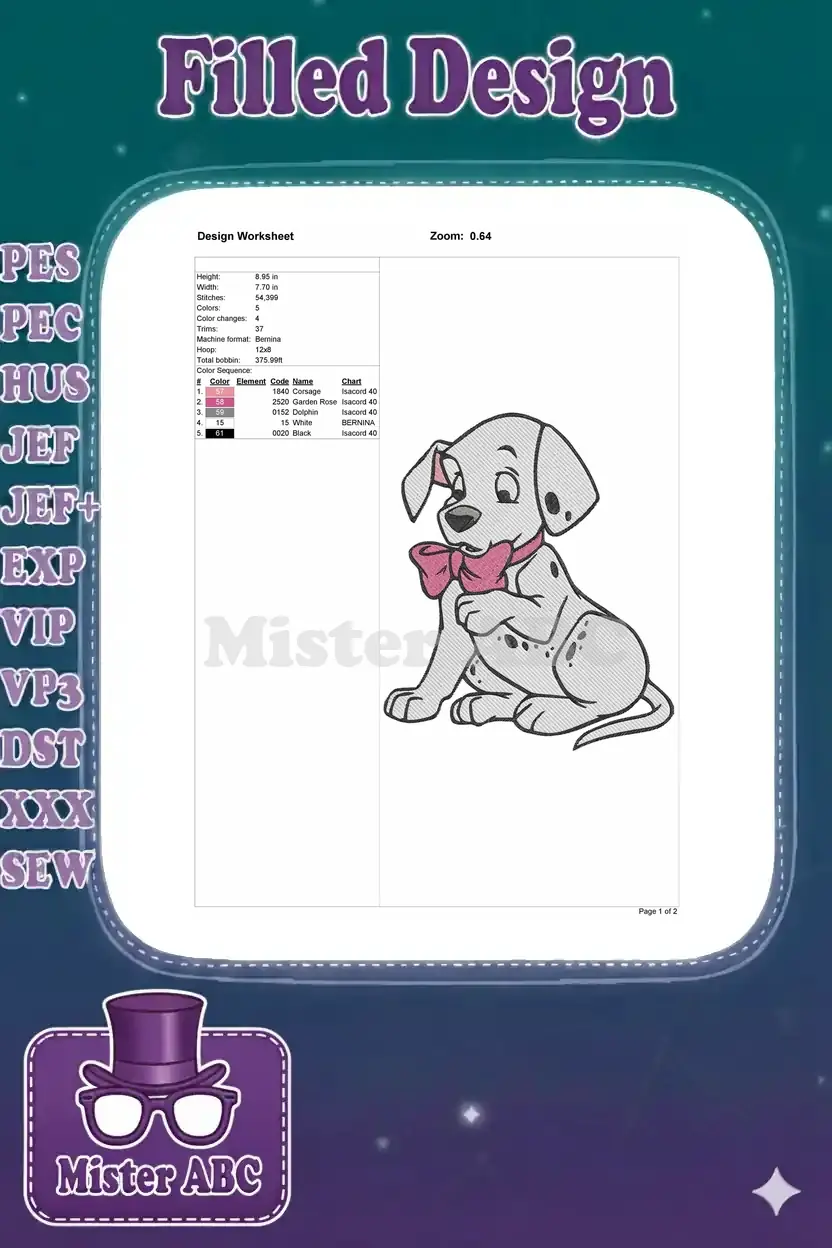 Cute Dalmatian puppy with pink bow embroidery designs
