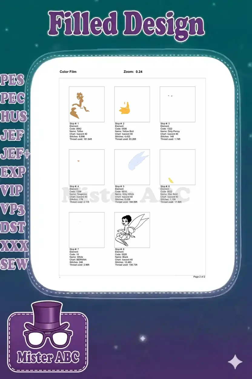 | Stitches | Colors | Thread Changes |