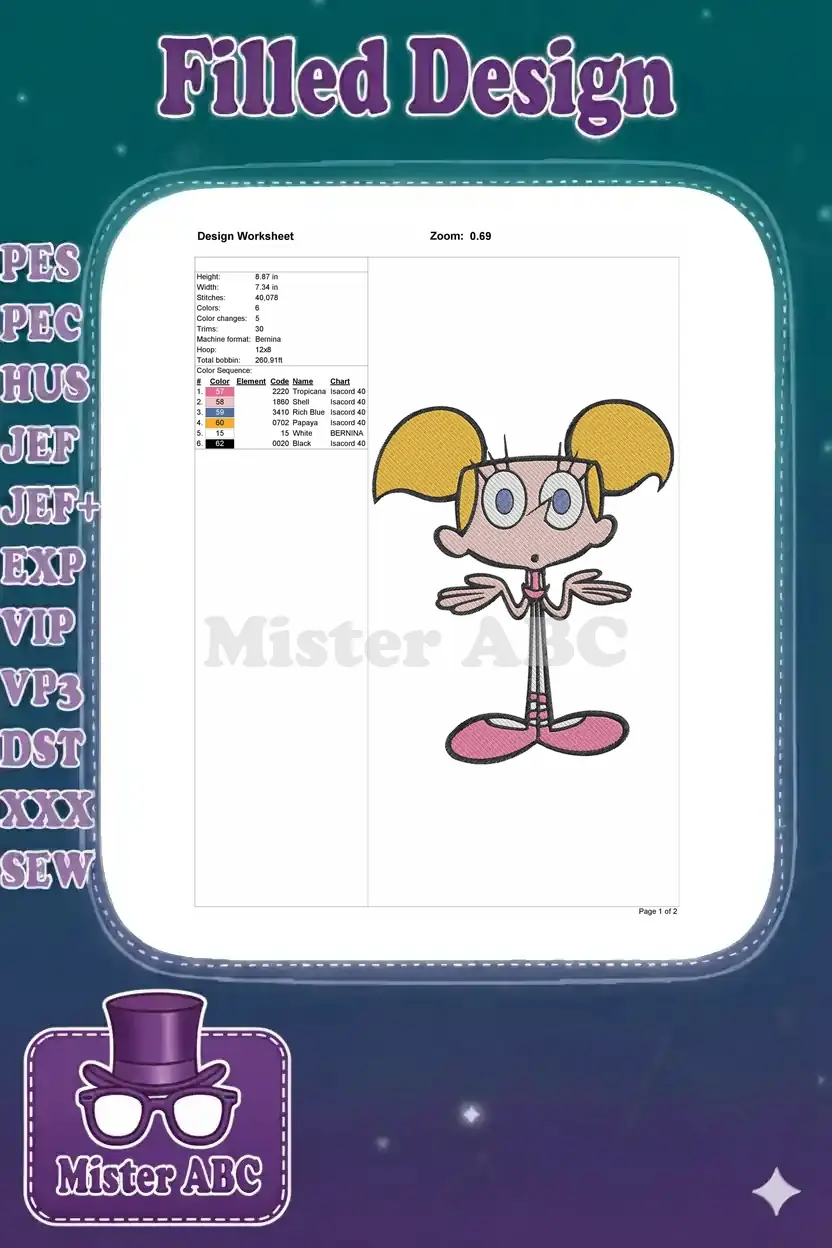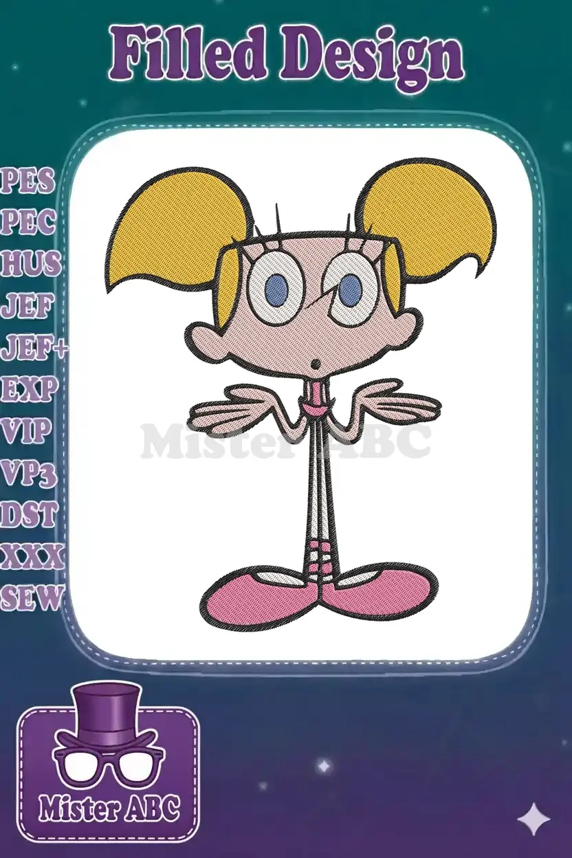 Cute Dee Dee cartoon character shrugging pose embroidery designs