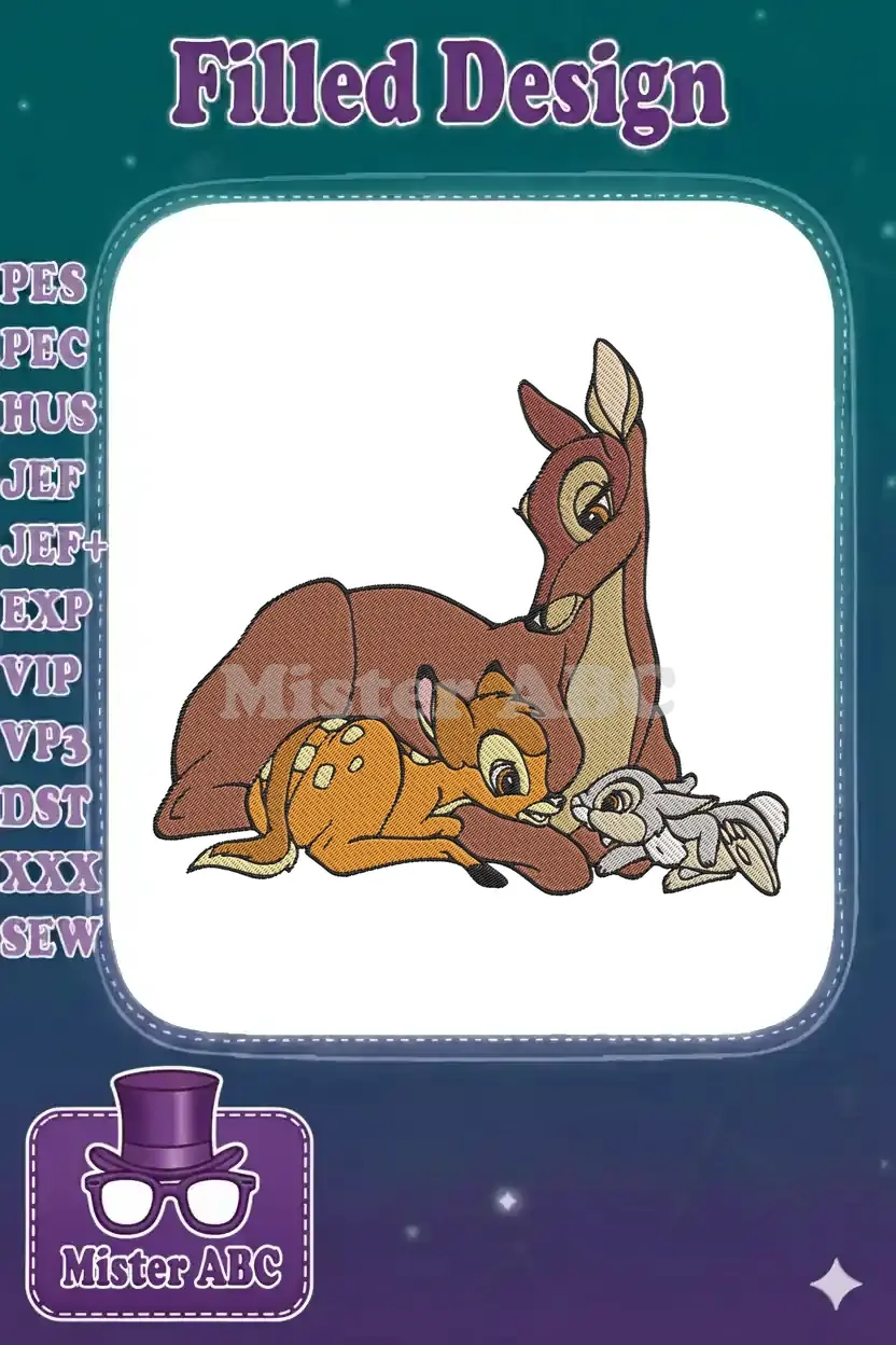 Cute Disney Bambi Mother and Thumper Friends Embroidery Designs