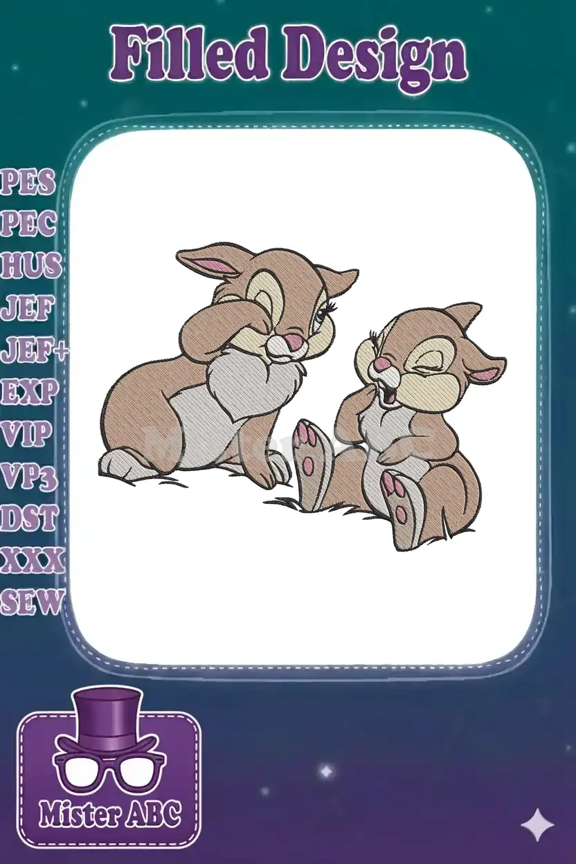 Cute Disney Bunnies Thumper Sisters Giggling Face Covering Embroidery Designs