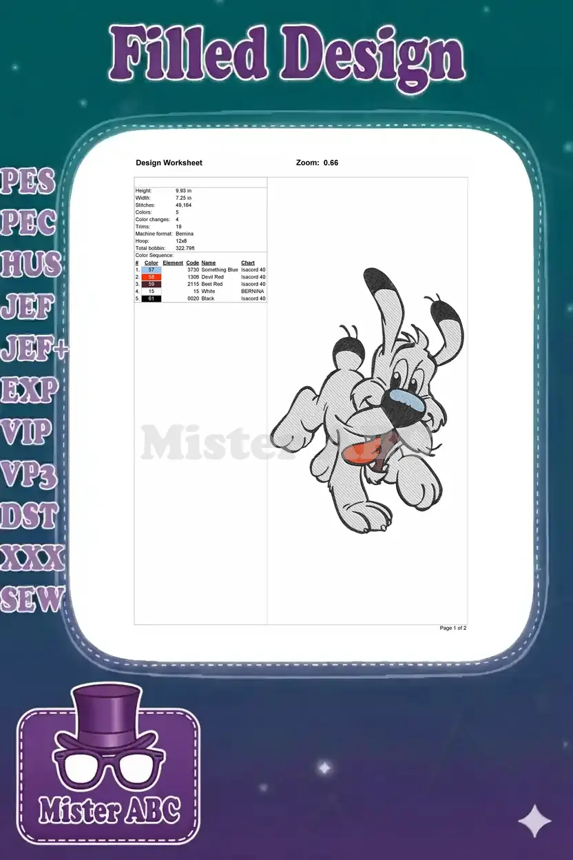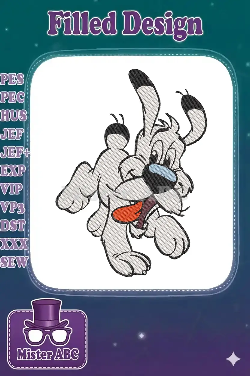 Cute Dogmatix playful cartoon dog character embroidery designs