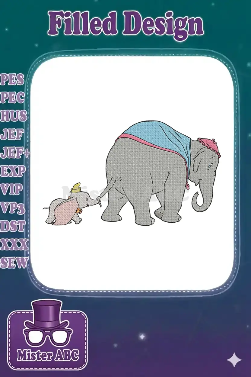 Cute Dumbo and Mother Elephant Family Embroidery Designs