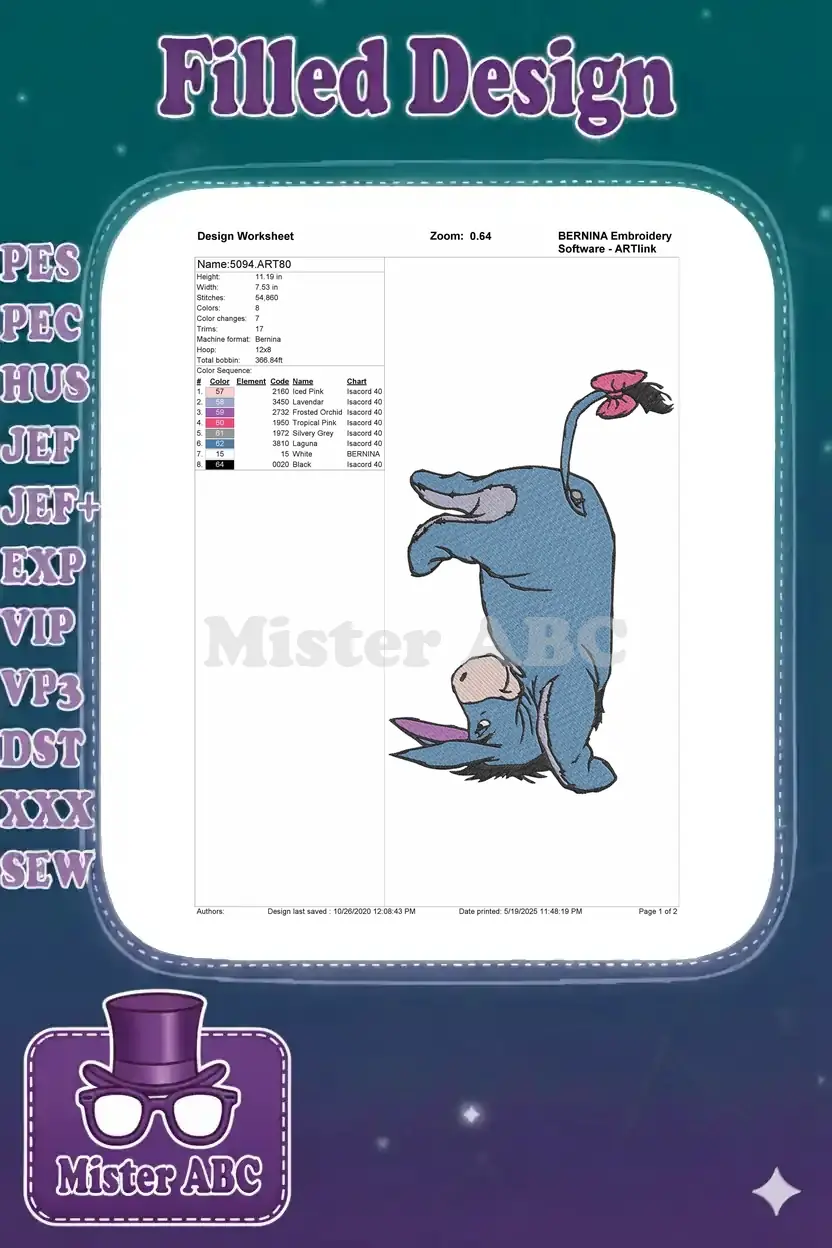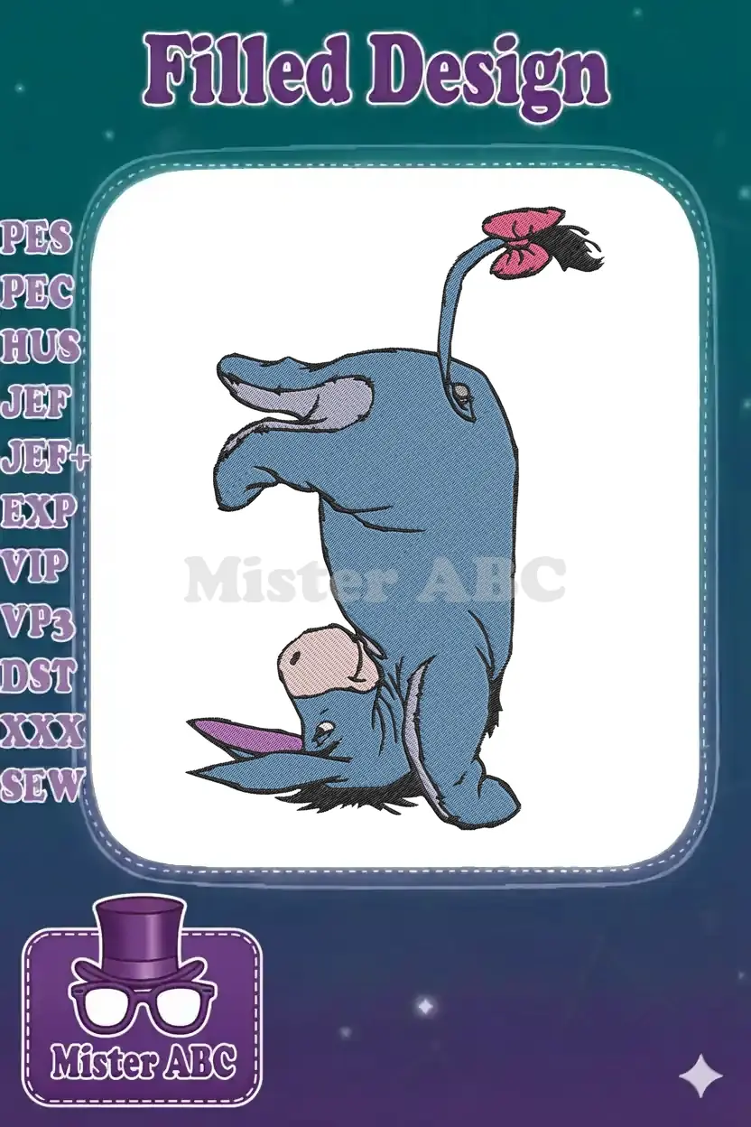 Cute Eeyore Upside Down Cartoon Character Embroidery Designs