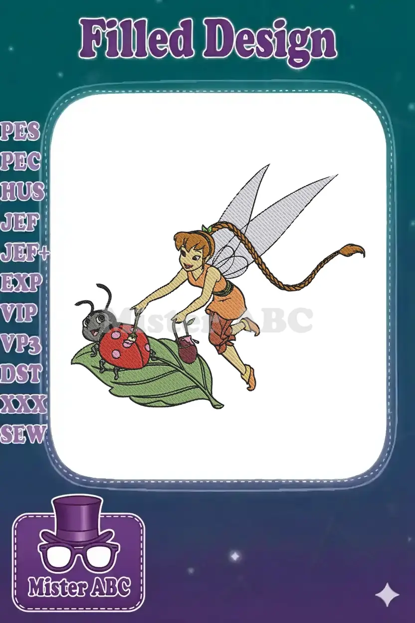 Cute fairy and ladybug on a leaf embroidery designs