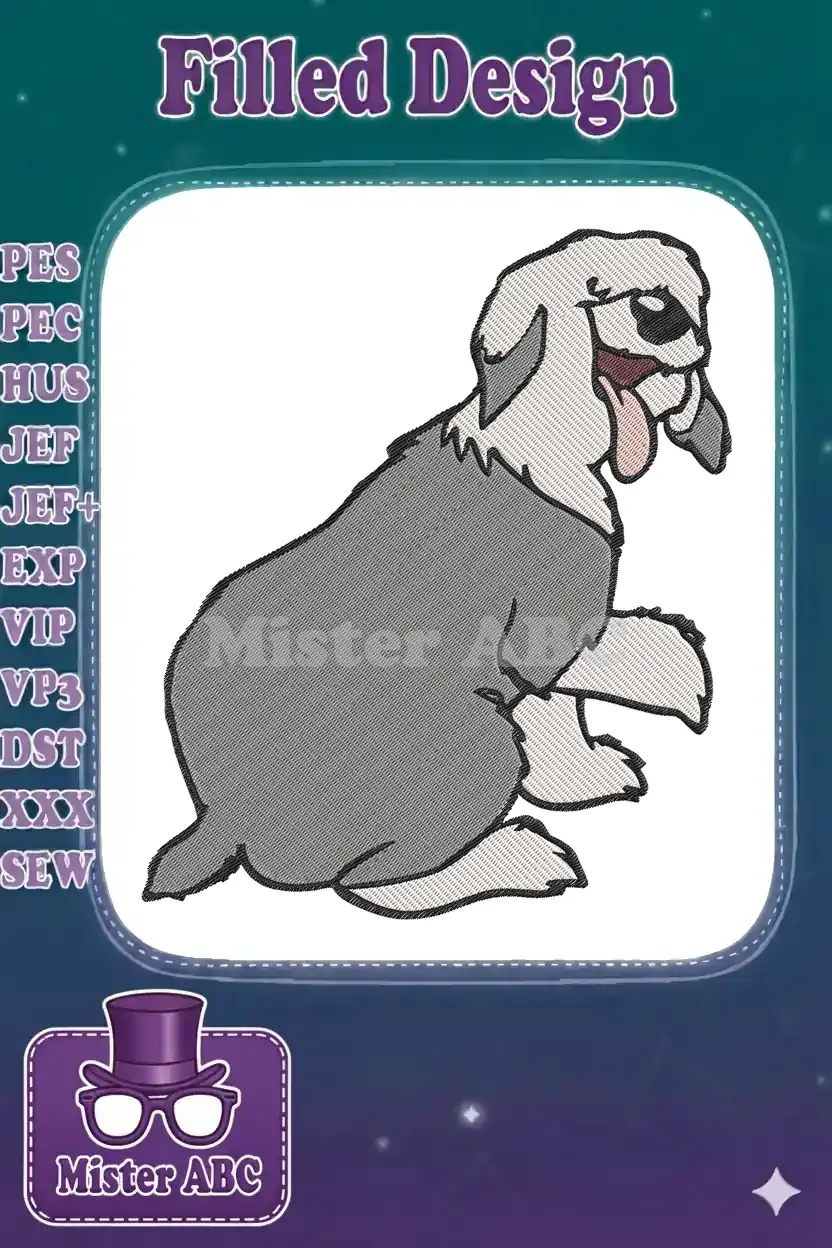 Cute Fluffy Old English Sheepdog Sitting Happy Embroidery Designs