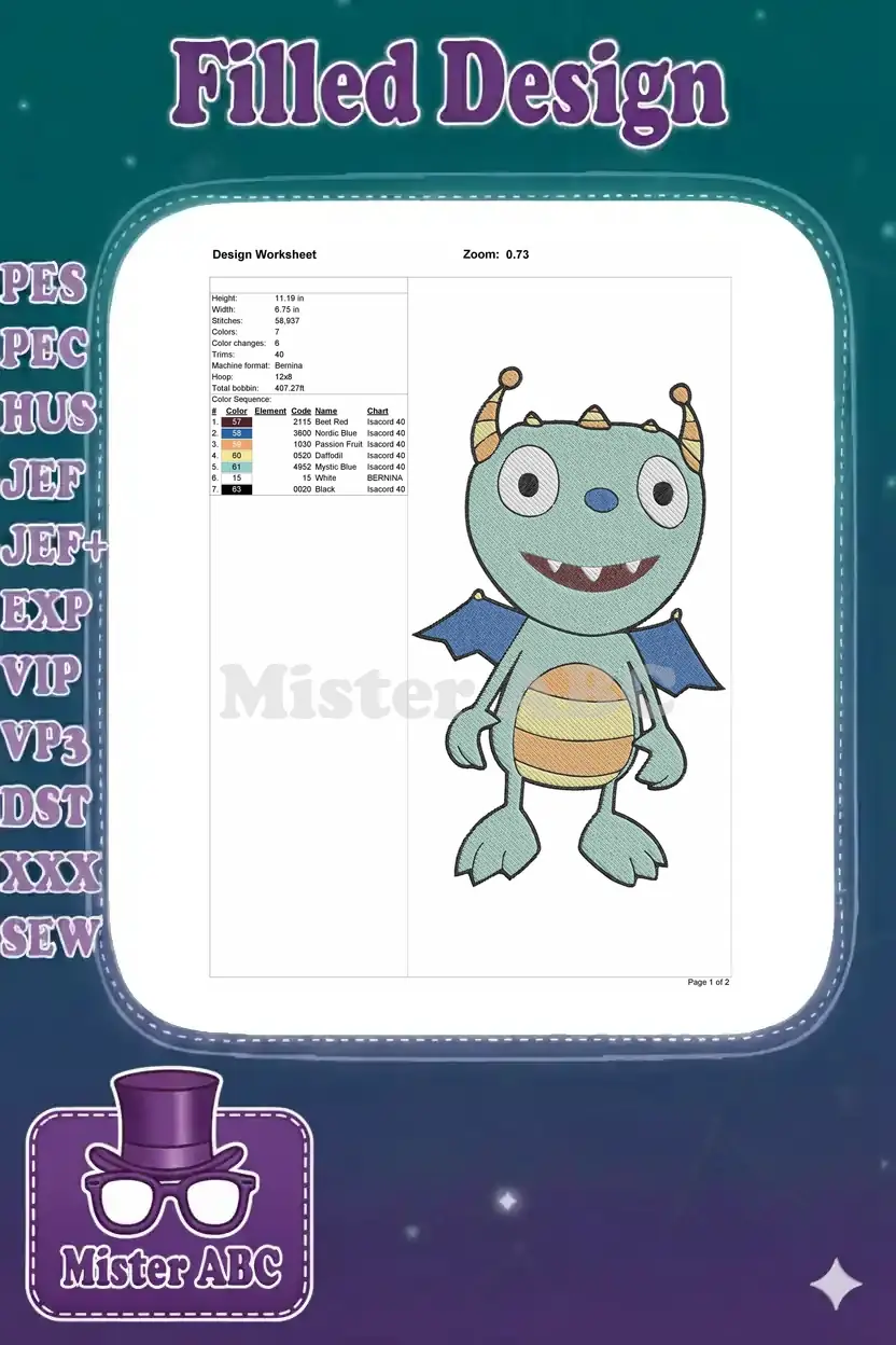 Bring a smile to any project with this adorable aqua monster embroidery design! Perfect for children’s wear, bags, or decor, featuring vibrant colors and a friendly face.