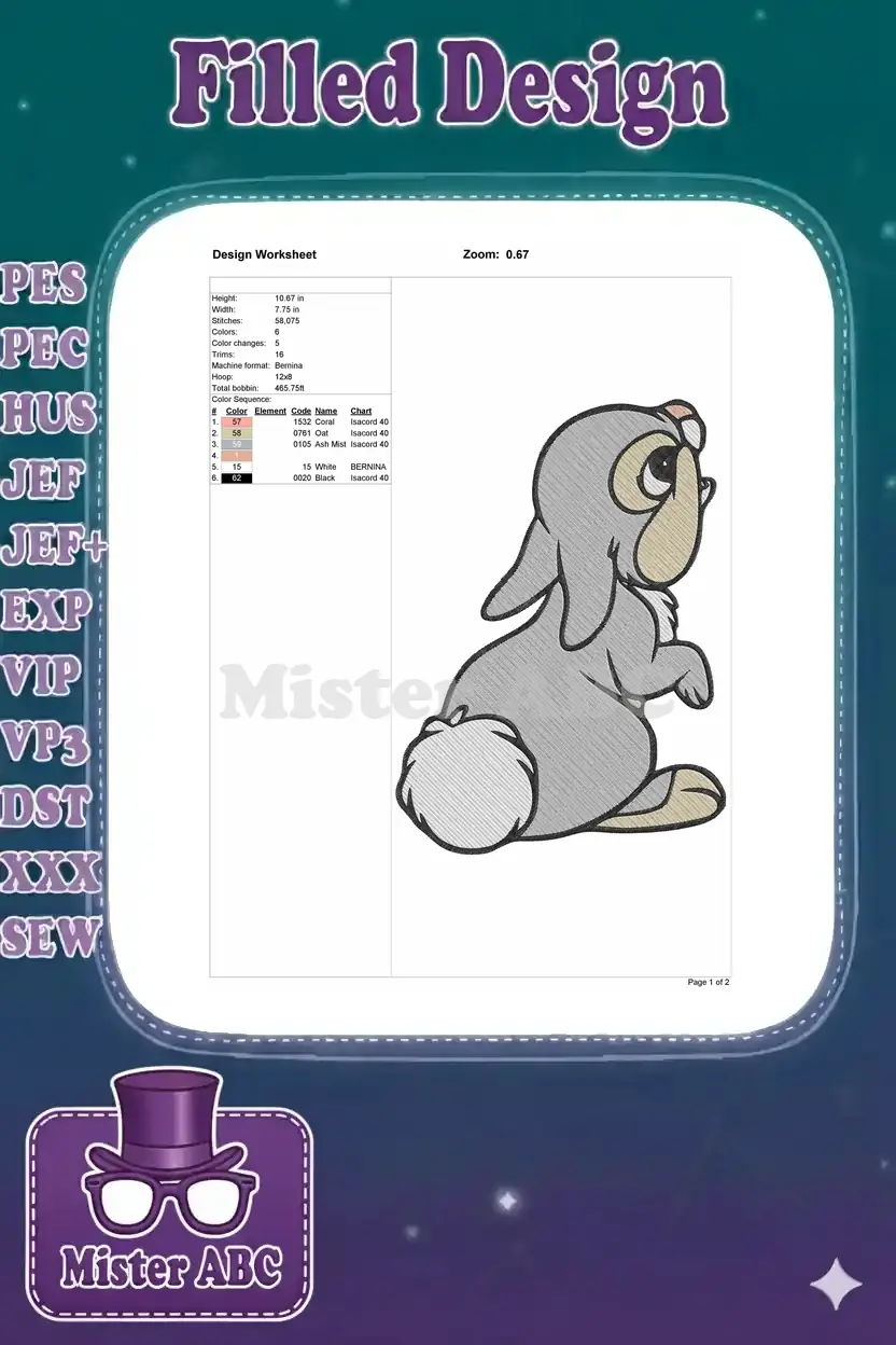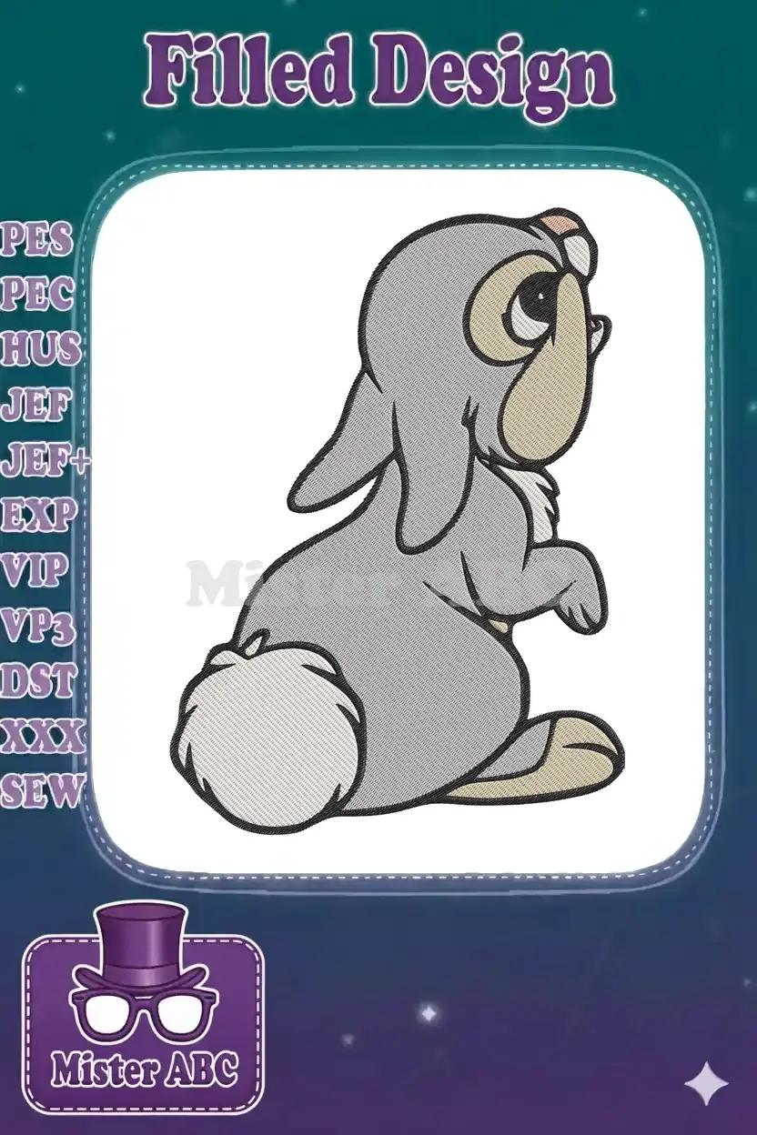 Cute Grey Cartoon Rabbit Thumper-like Embroidery Designs for Kids
