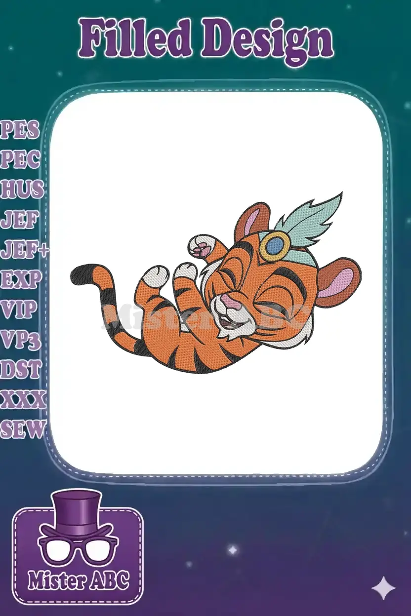 Cute Happy Baby Tiger Cub Feather Headband Embroidery Designs