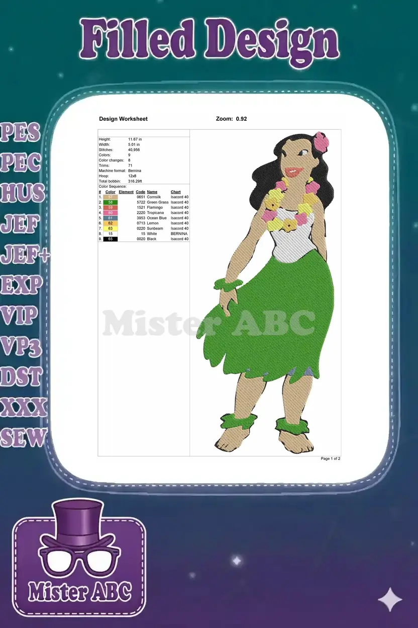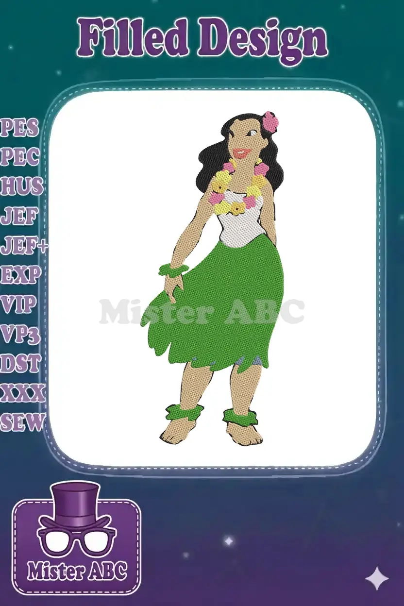 Cute Hawaiian Hula Girl Dancing Tropical Flower Embroidery Designs