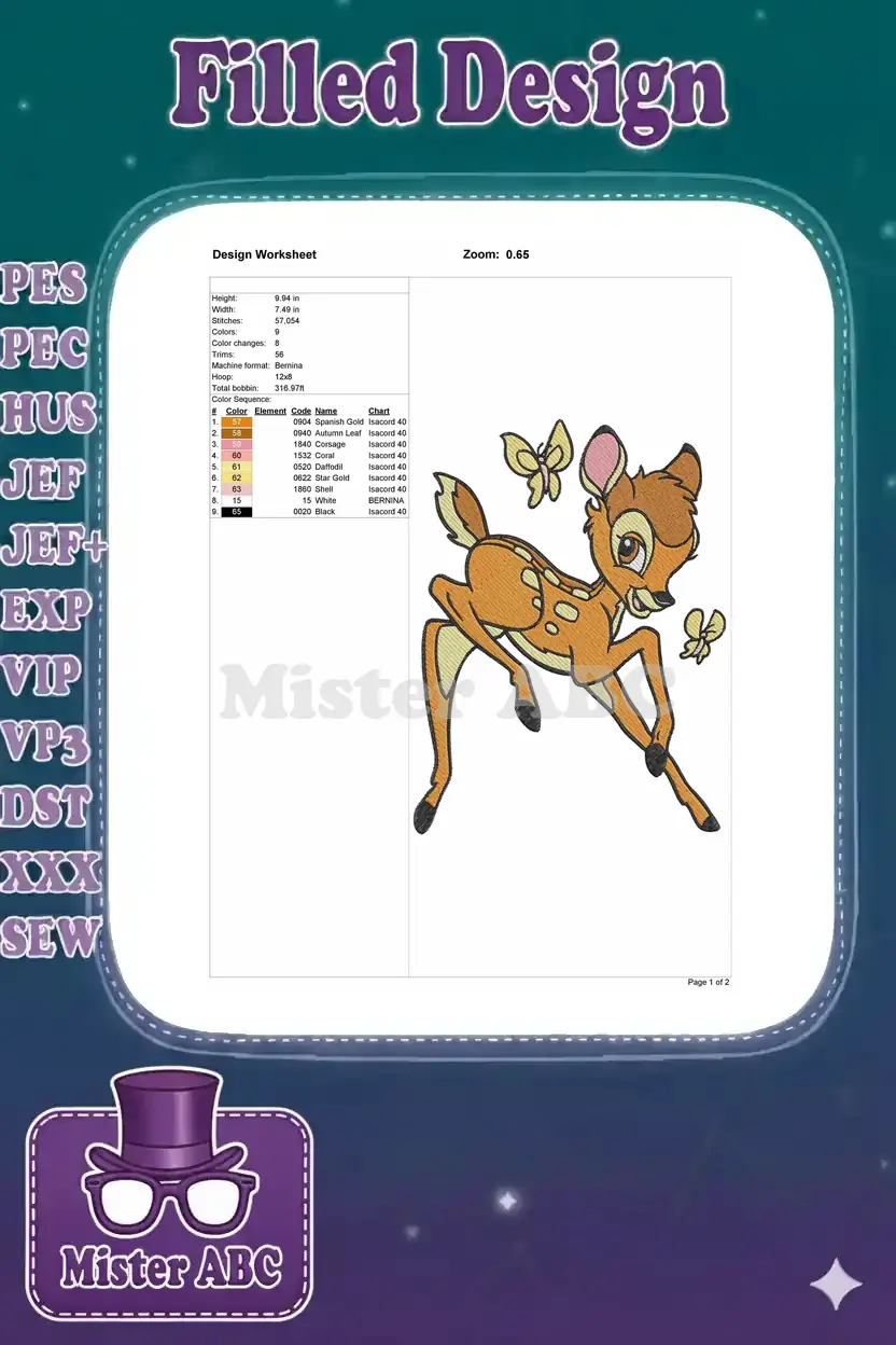 Cute jumping fawn and butterflies forest embroidery designs for children