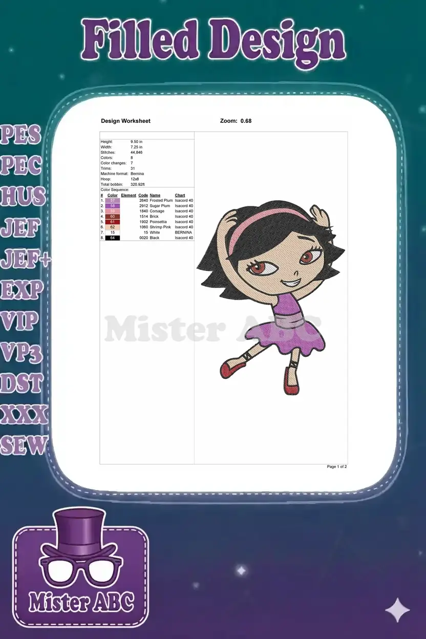 Cute Little Einsteins June Ballerina Dancing Embroidery Designs