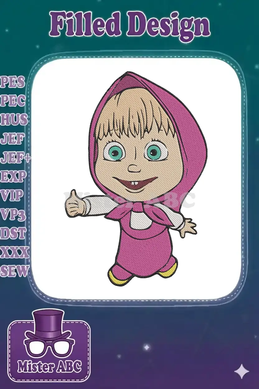 Cute Masha thumbs up pose cartoon character embroidery designs
