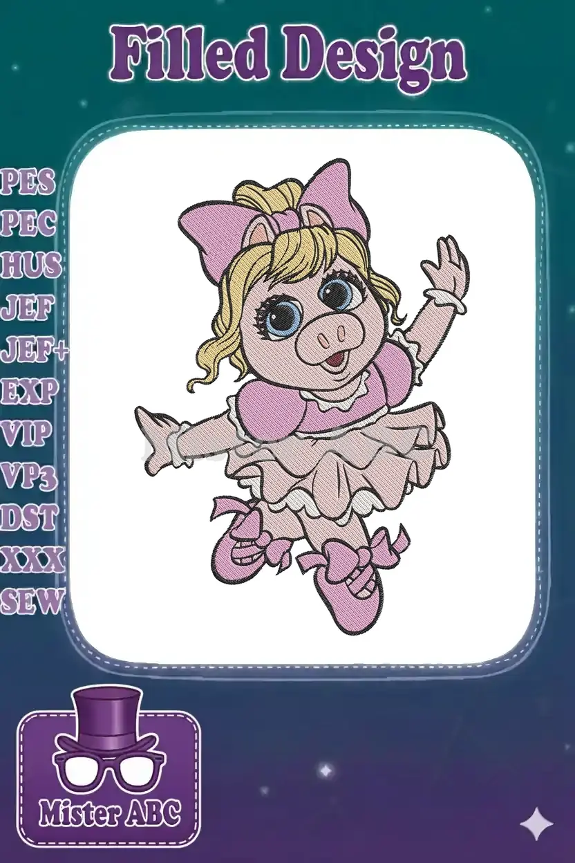 Cute Miss Piggy Ballerina Pink Dress Embroidery Designs