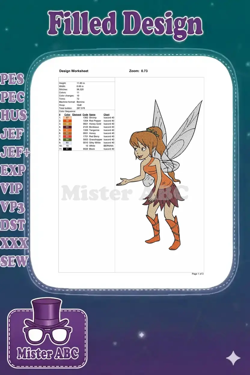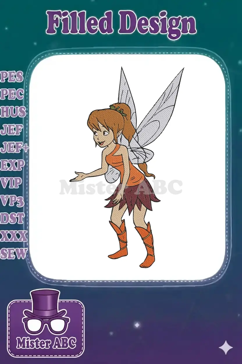 Cute mythical fairy with wings embroidery designs for fantasy projects