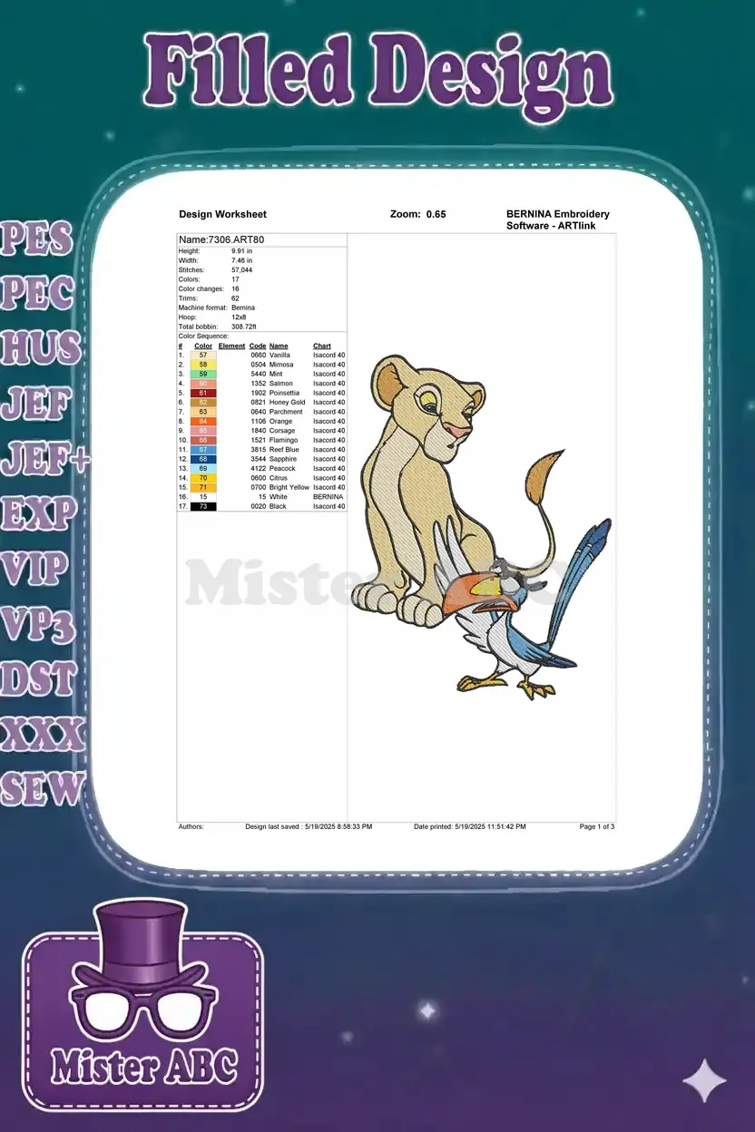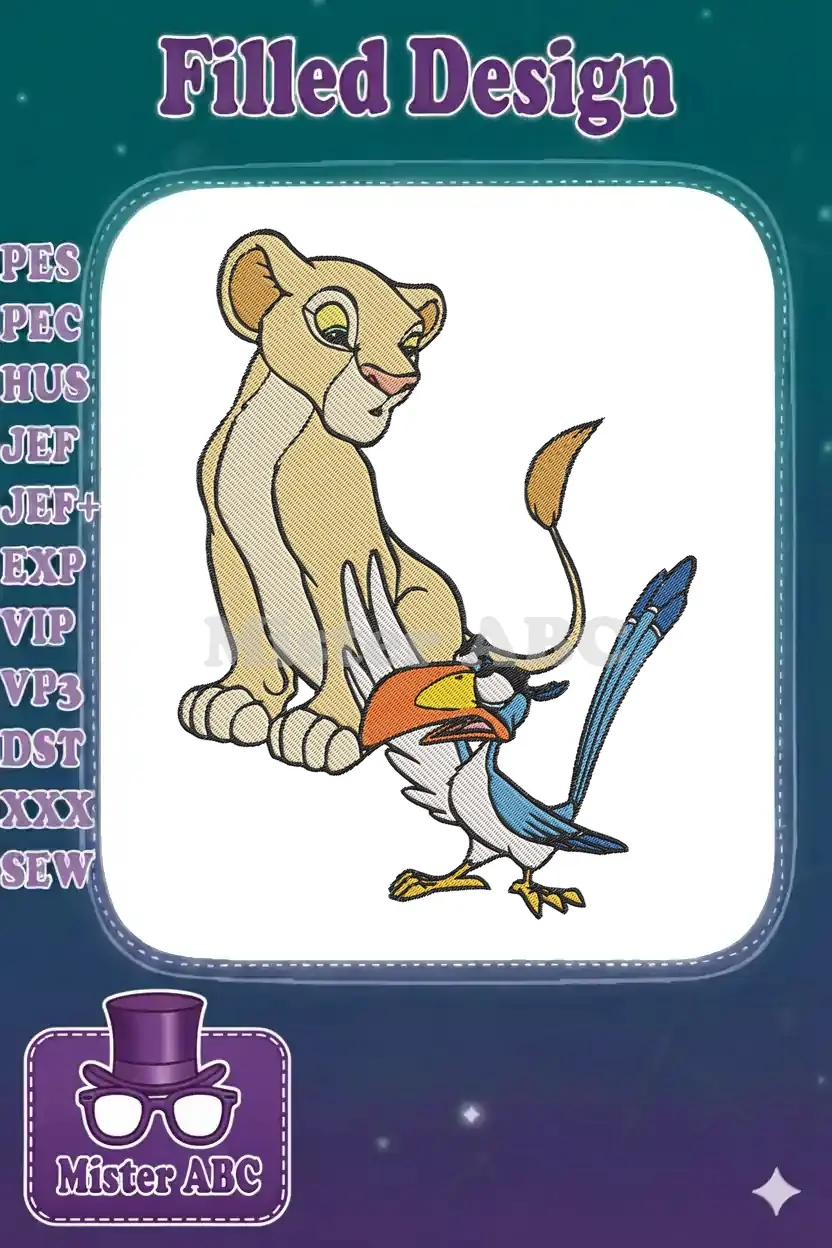 Cute Nala Lion Cub and Zazu Hornbill Disney embroidery designs