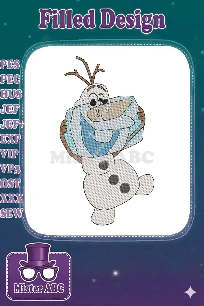 Cute Olaf from Frozen with Ice Block Embroidery Designs