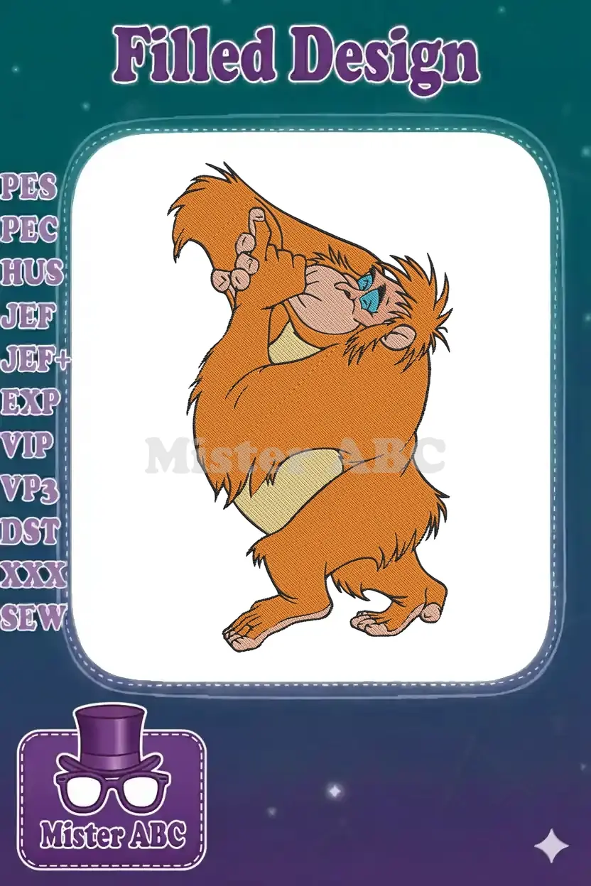 Cute orange furry monster bigfoot cartoon character embroidery designs