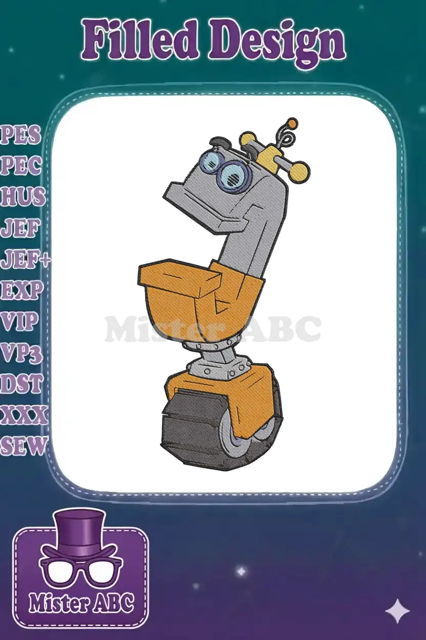 Cute orange and grey robot character machine embroidery designs