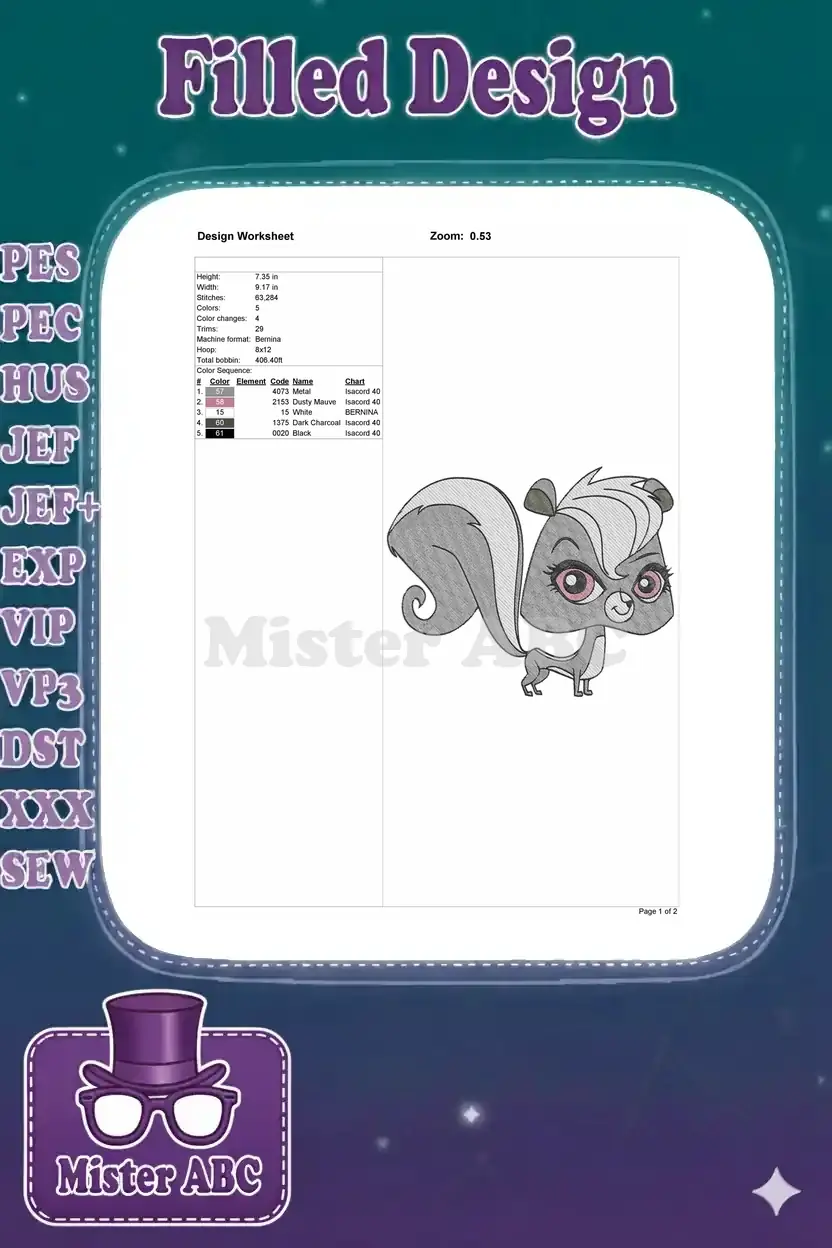 Cute Penny Ling Skunk Character Cartoon Embroidery Designs