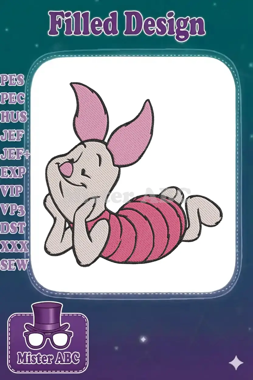 Charming Piglet embroidery design, perfect for adding a touch of whimsy and joy to any project. Delightful and detailed, a must-have for fans!