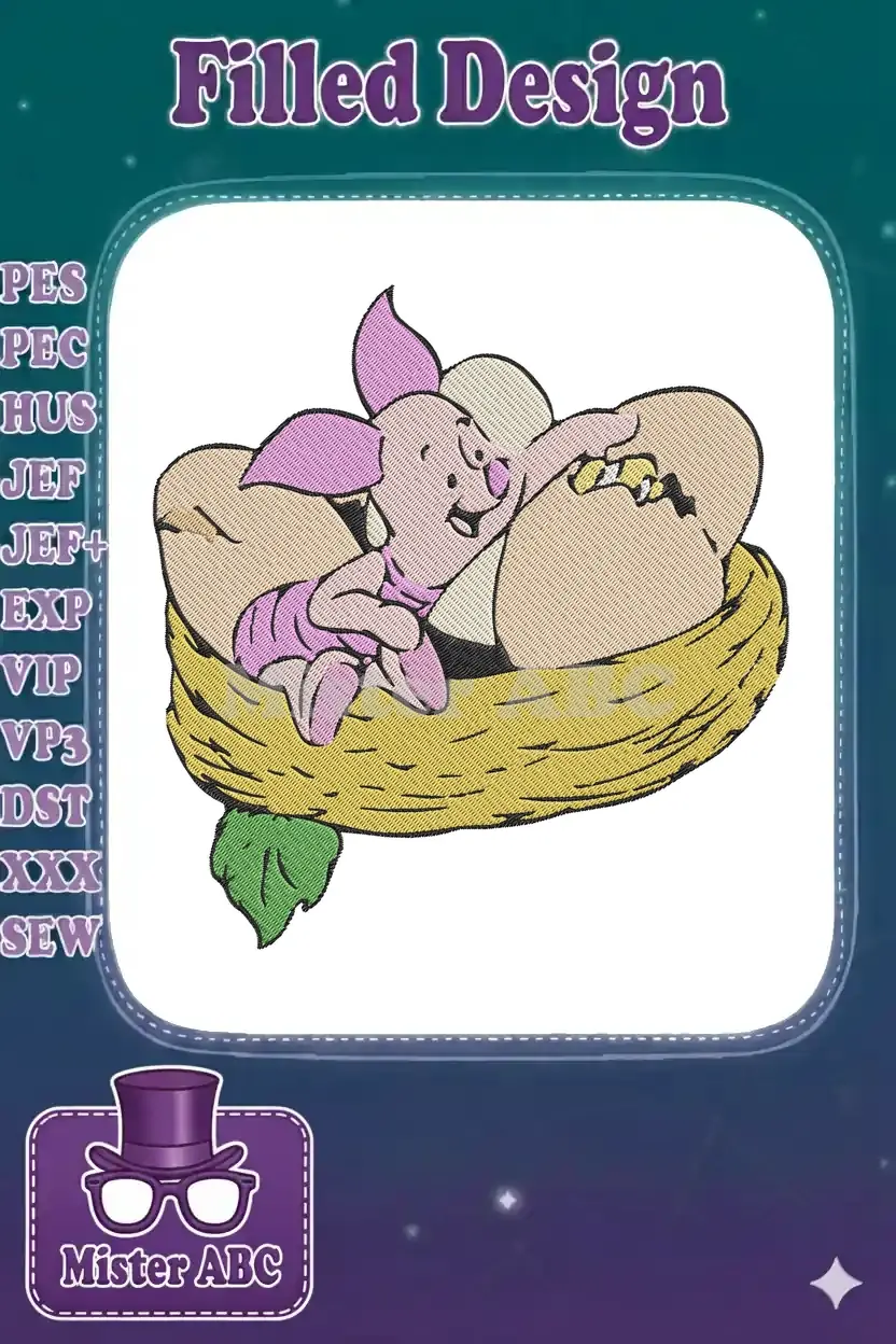 Cute Piglet and Hatching Chick Easter Nest embroidery designs