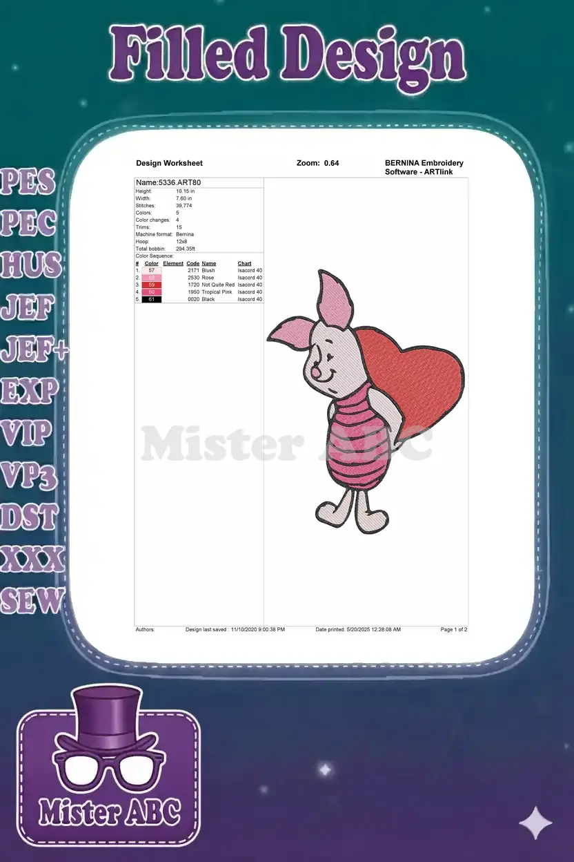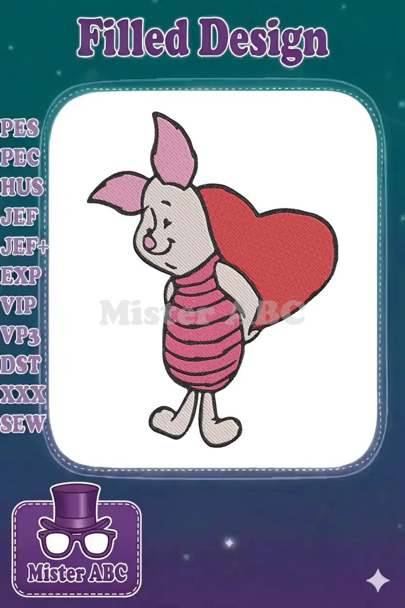 Cute Piglet holding heart embroidery designs for Valentine’s Day