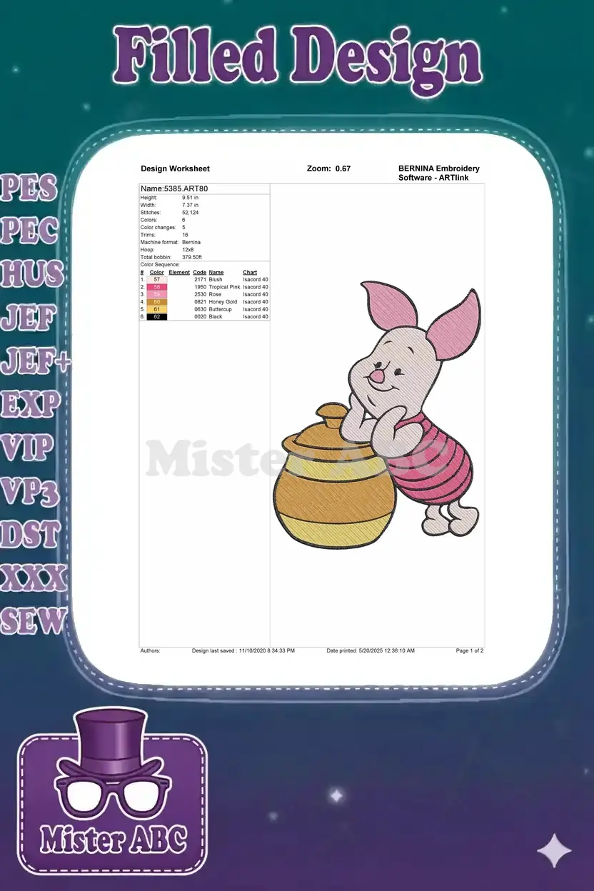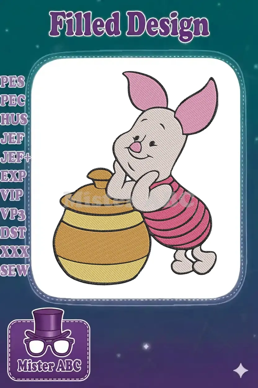 Cute Piglet with Honey Pot Winnie the Pooh embroidery designs
