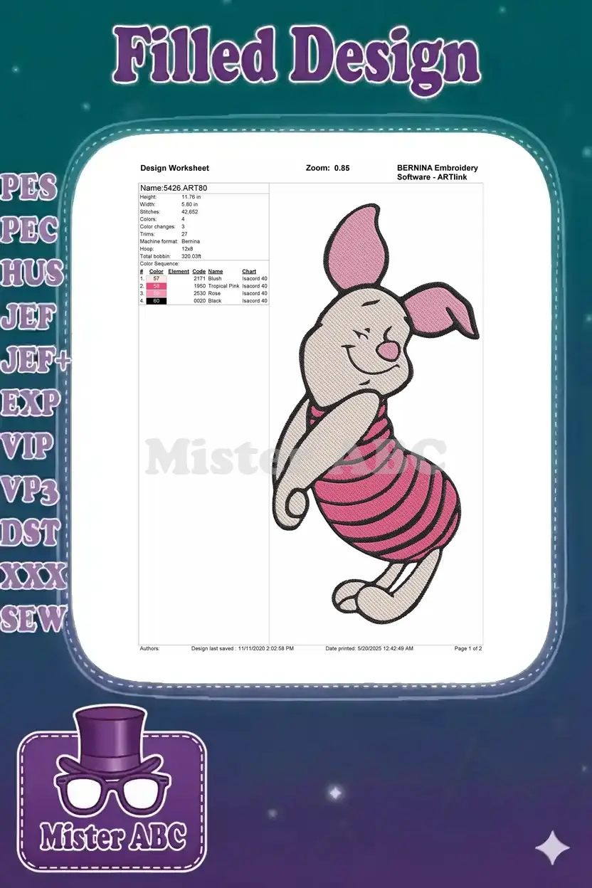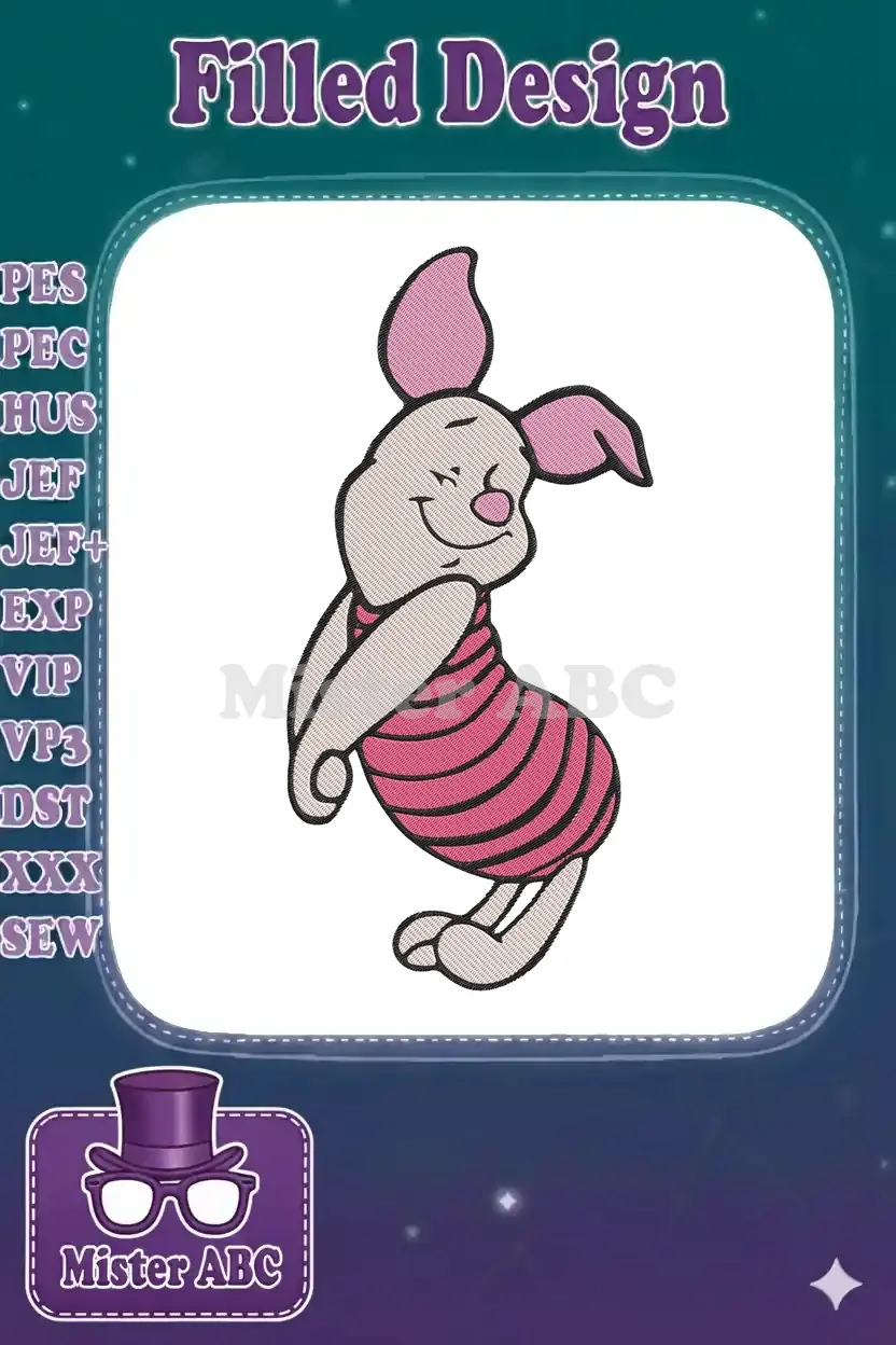 Cute Piglet from Winnie Pooh Smiling Pink Striped Embroidery Designs