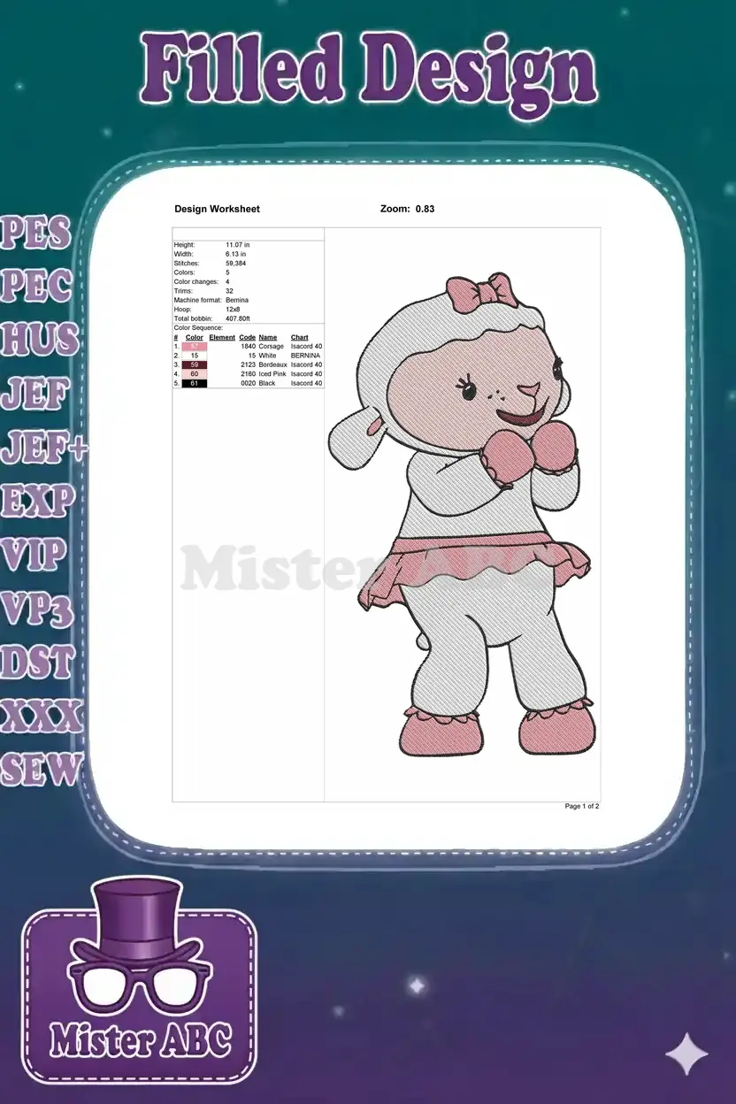 Cute pink and white lamb girl character embroidery designs