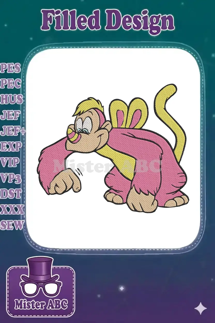 Cute pink and yellow monkey with bunny ears embroidery designs