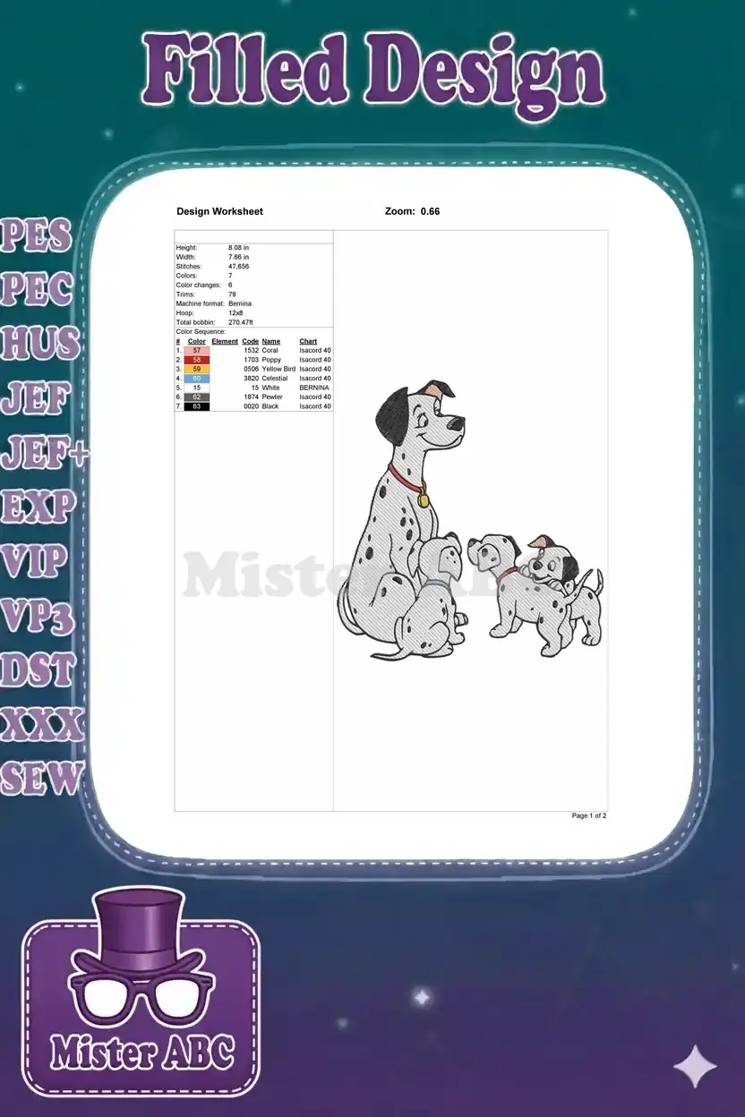 Cute Playful Dalmatian Dog and Three Puppies Embroidery Designs