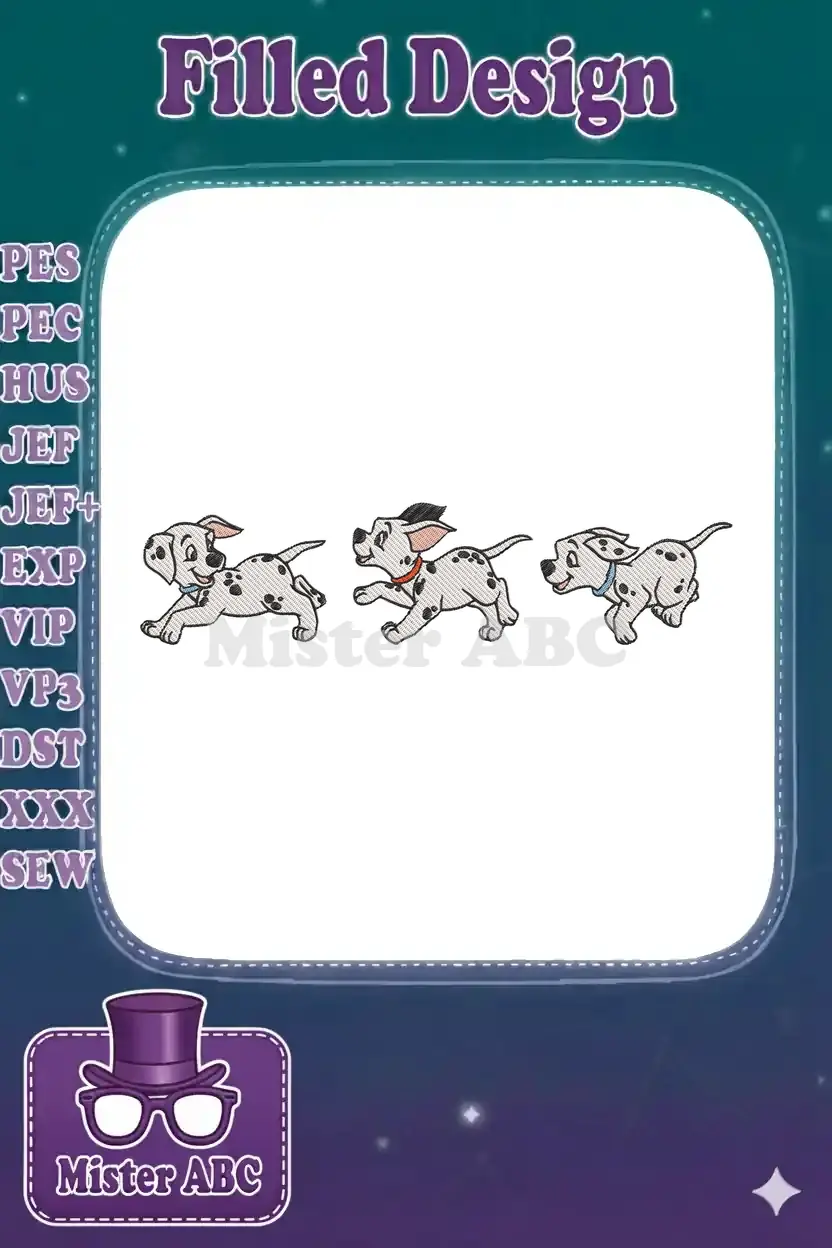 Cute playful Dalmatian puppies cartoon embroidery designs for pet lovers