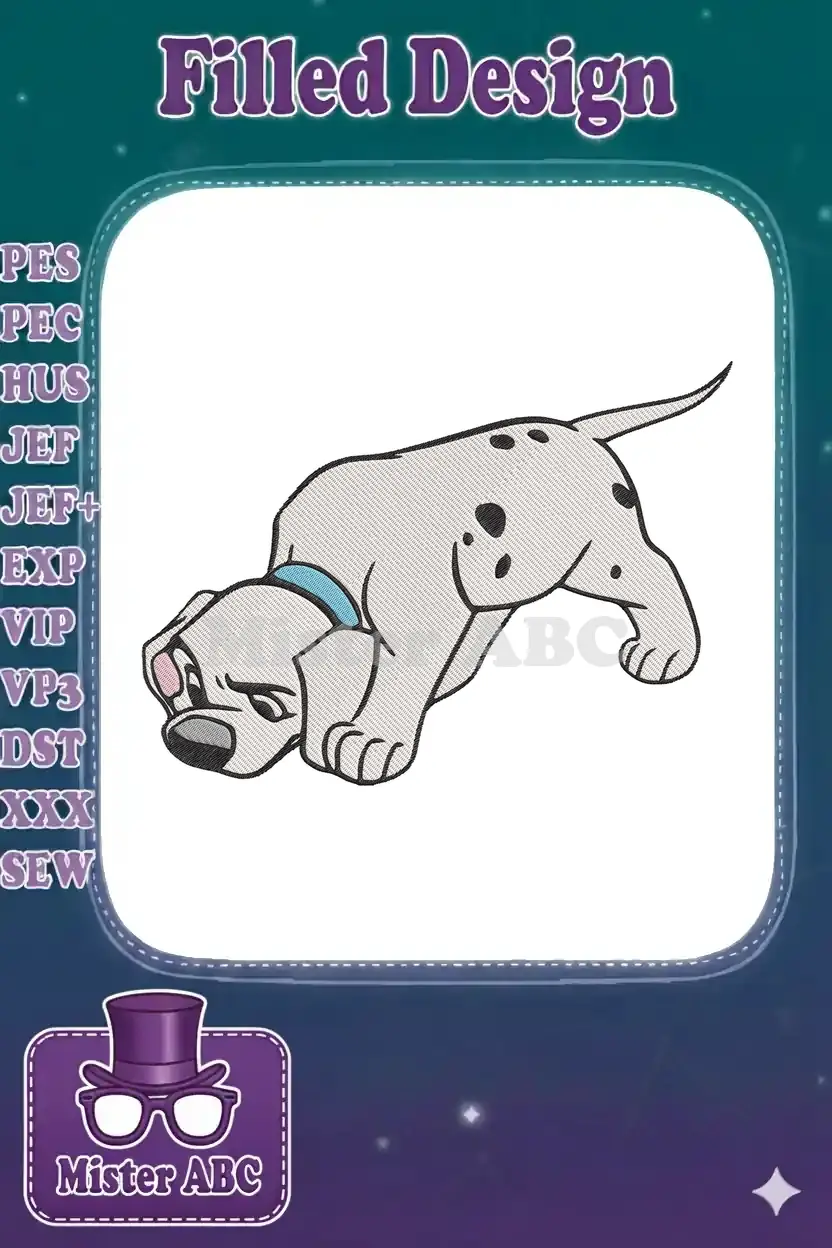 Adorable Dalmatian puppy embroidery design, perfect for adding a playful touch to any project. Capture the charm of this classic canine with intricate stitching.