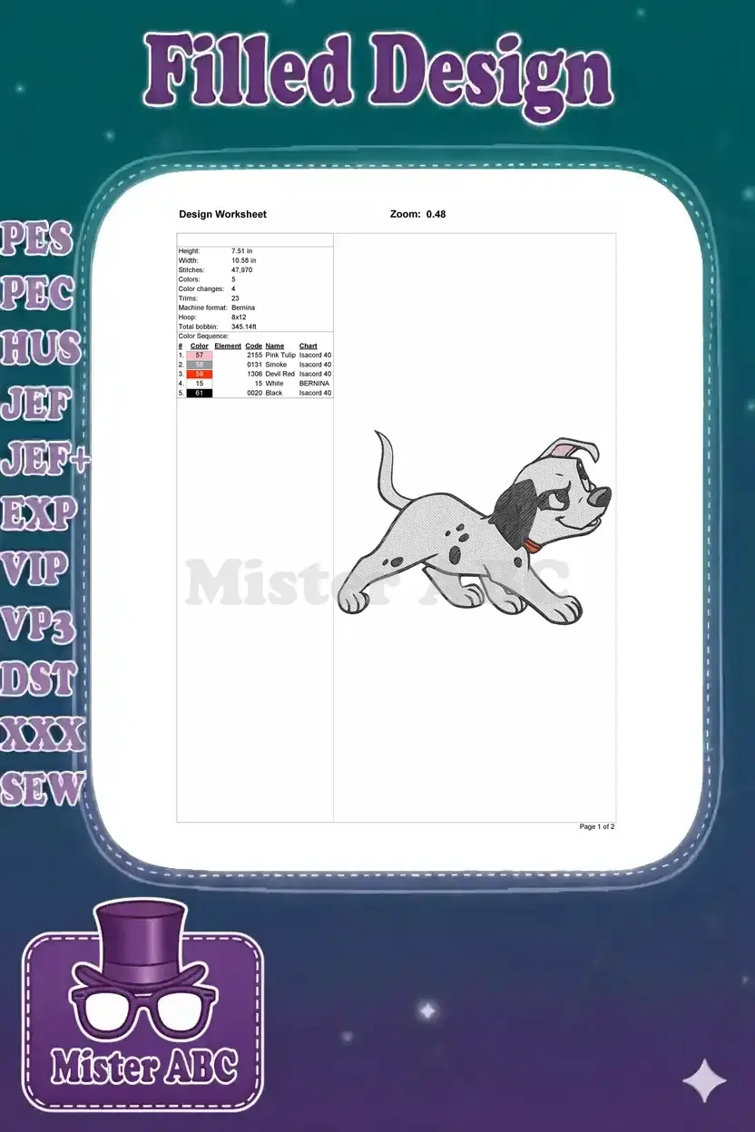 Cute playful Dalmatian puppy dog embroidery designs with orange collar