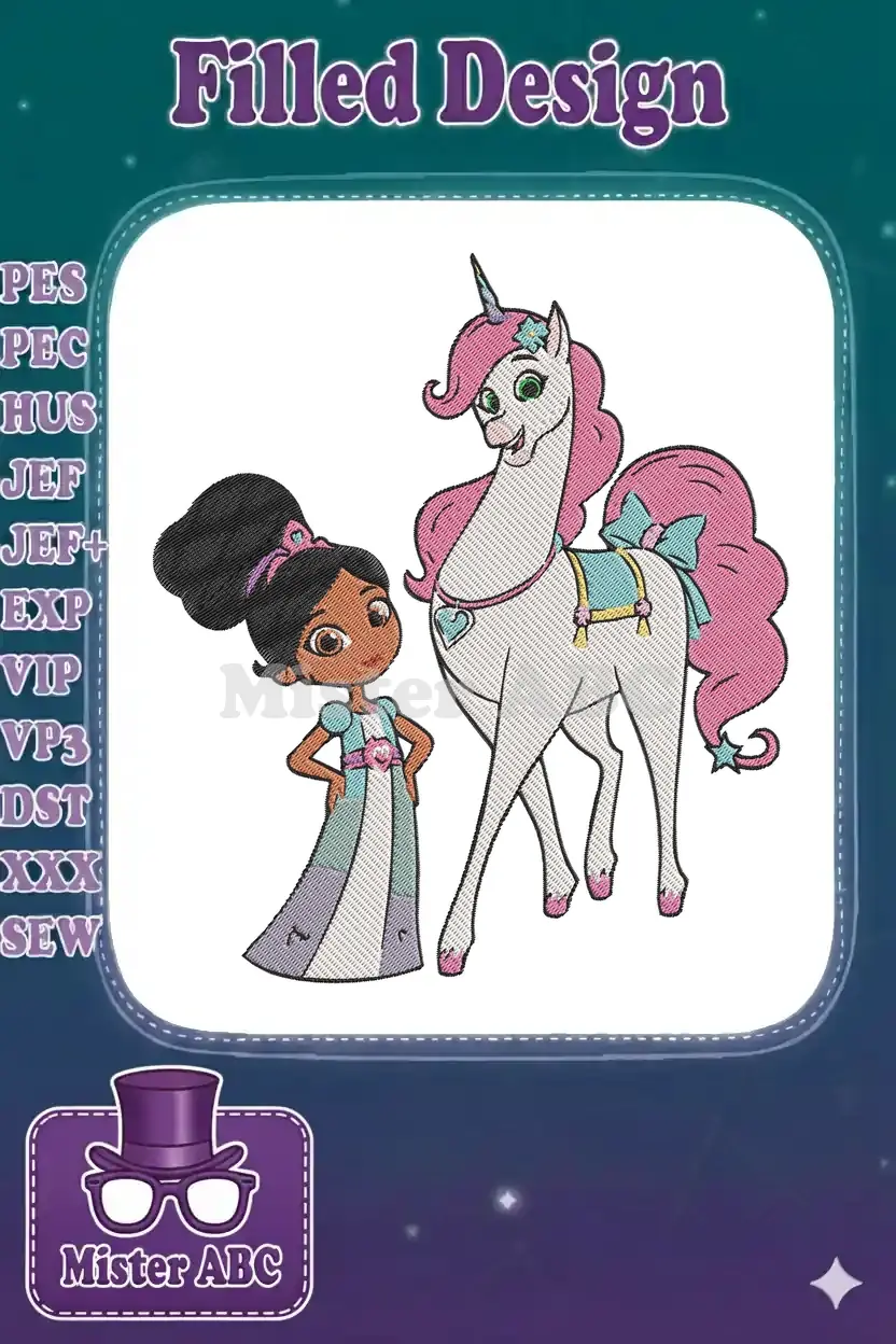 Cute Princess Girl and Magical Unicorn Embroidery Designs