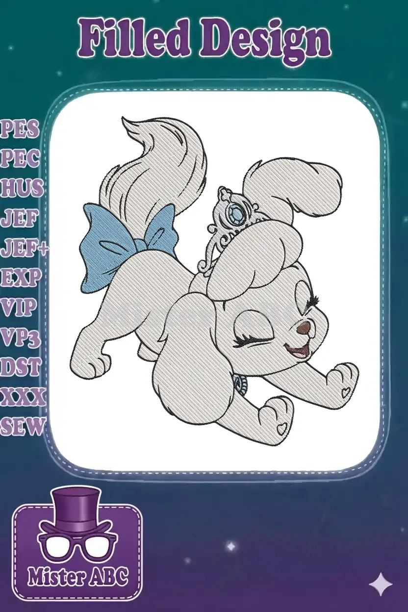 Cute Princess Puppy with Crown and Blue Bow Embroidery Designs