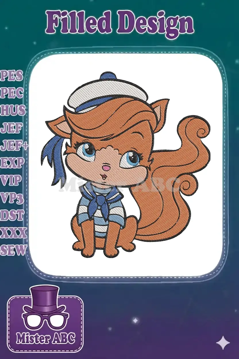 Cute Sailor Squirrel with Blue Eyes Embroidery Designs