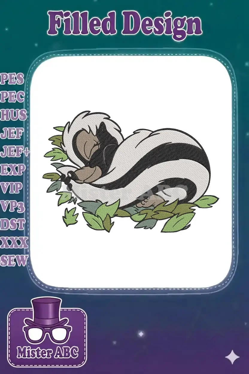 Cute sleeping skunk in leaves unique embroidery designs