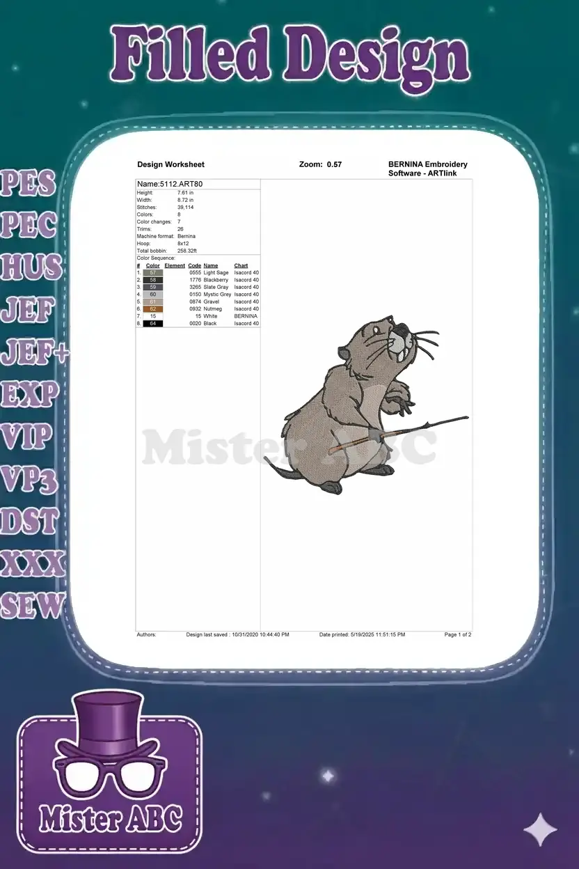 Bring whimsical charm to your projects with this delightful Gopher embroidery design, perfect for fun apparel and home decor.