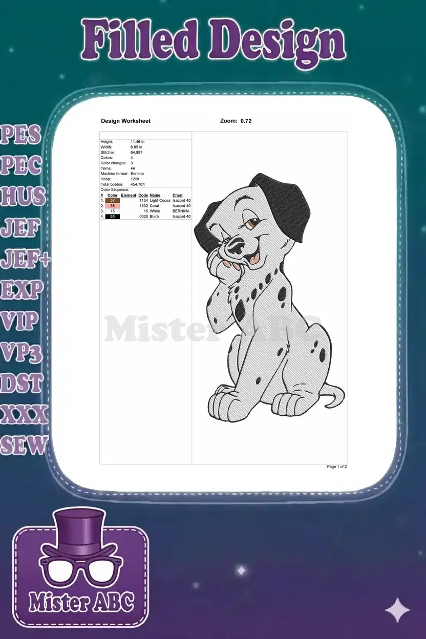 Cute Smiling Disney Dalmatian Puppy Dog Embroidery Designs – Instant Download
